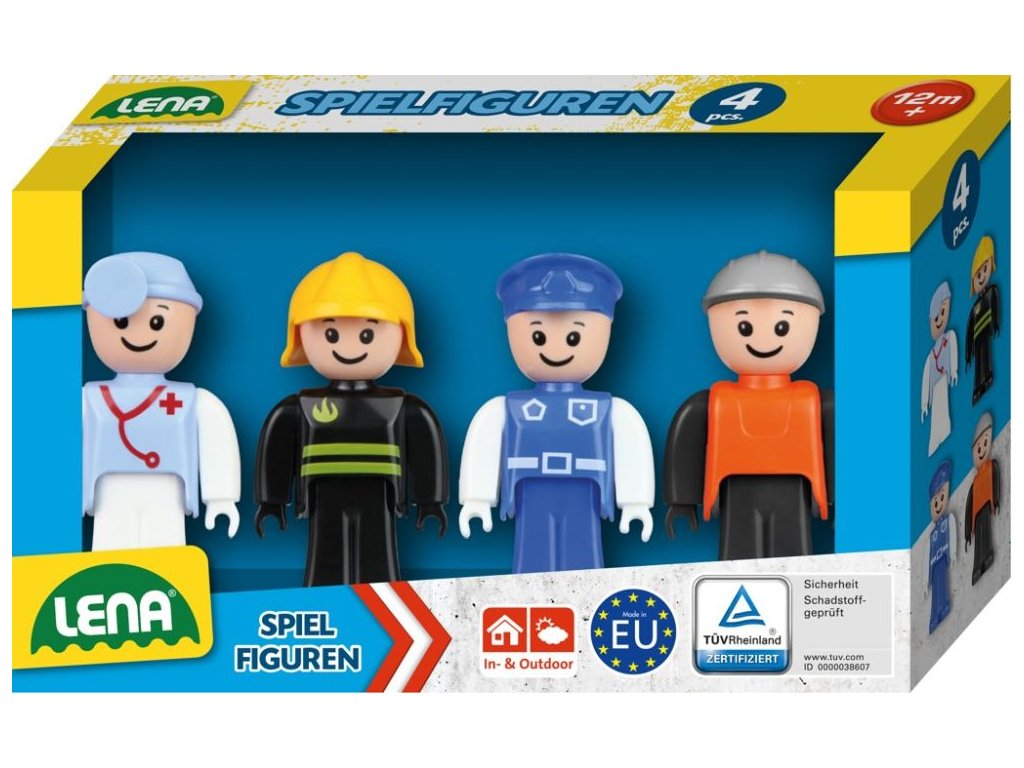 Set 4 panáčků: doktor, hasič, policista, stavební dělník. Panáčky lze upevnit do aut řady TRUXX