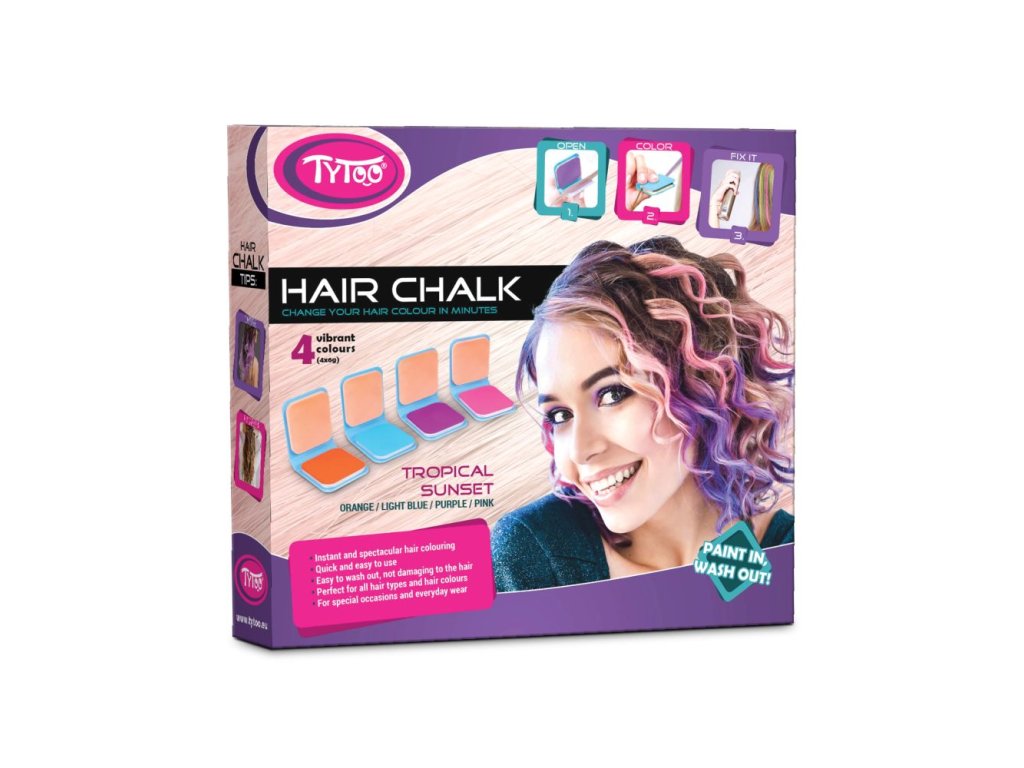 Ozdobte si vlasy křídami s tropickými barvami, aby byl váš vzhled ještě jedinečnější. Vhodné od 3 let.