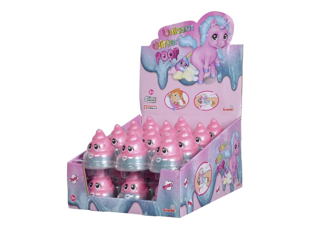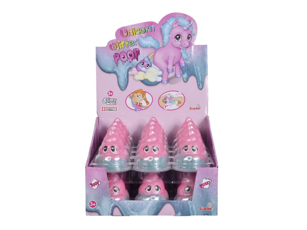 Slimy Unicorn prdící kelímek se třpytivým růžovo tyrkysovým slizem, 80g. Displej 24 ks.