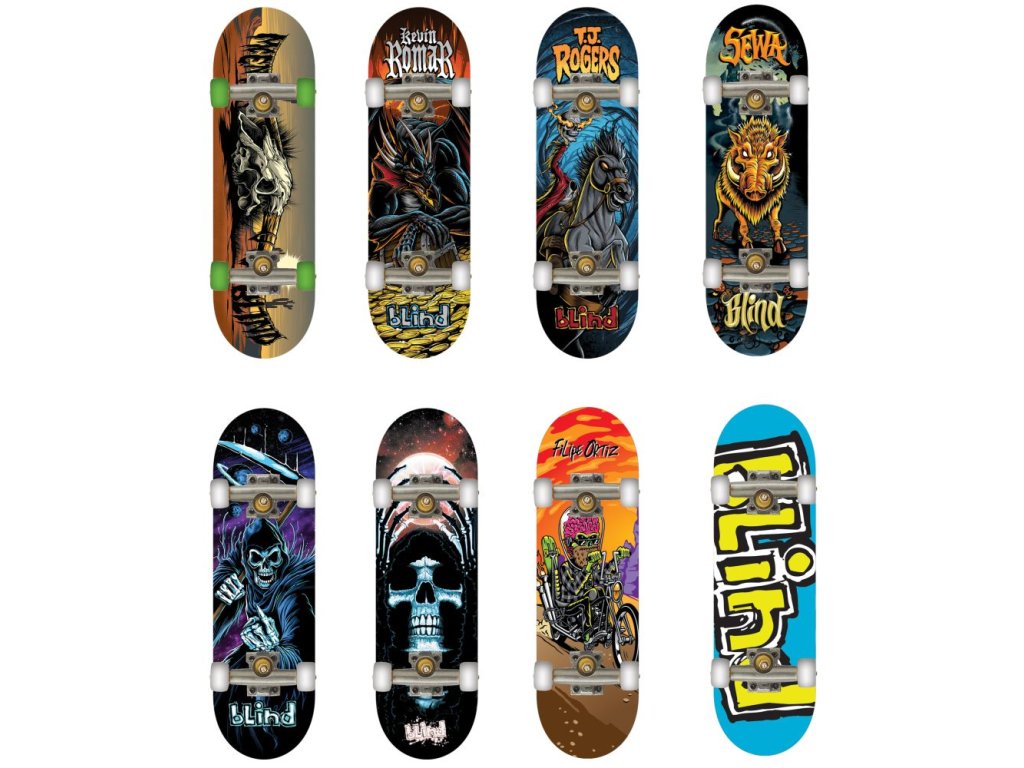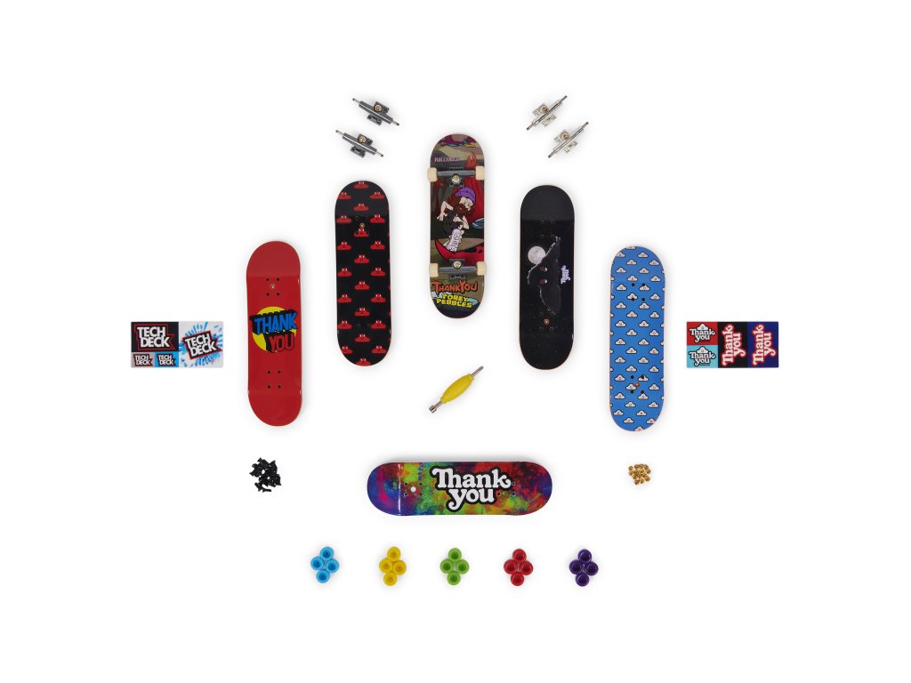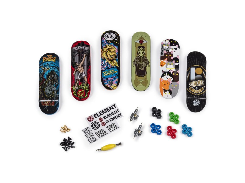 Vyber si z široké škály zcela nových originálních tvarů a stylů fingerboardů. Tyhle malé skateboardy ovládáš pomocí prstů. Nauč se co nejvíce triků. V balení najdeš 1 sestavené prkno, 5 prken k sestavení, 5 sad náhradních koleček, 4 trucky, samolepky, mini nářadí. Vhodné od 6 let.