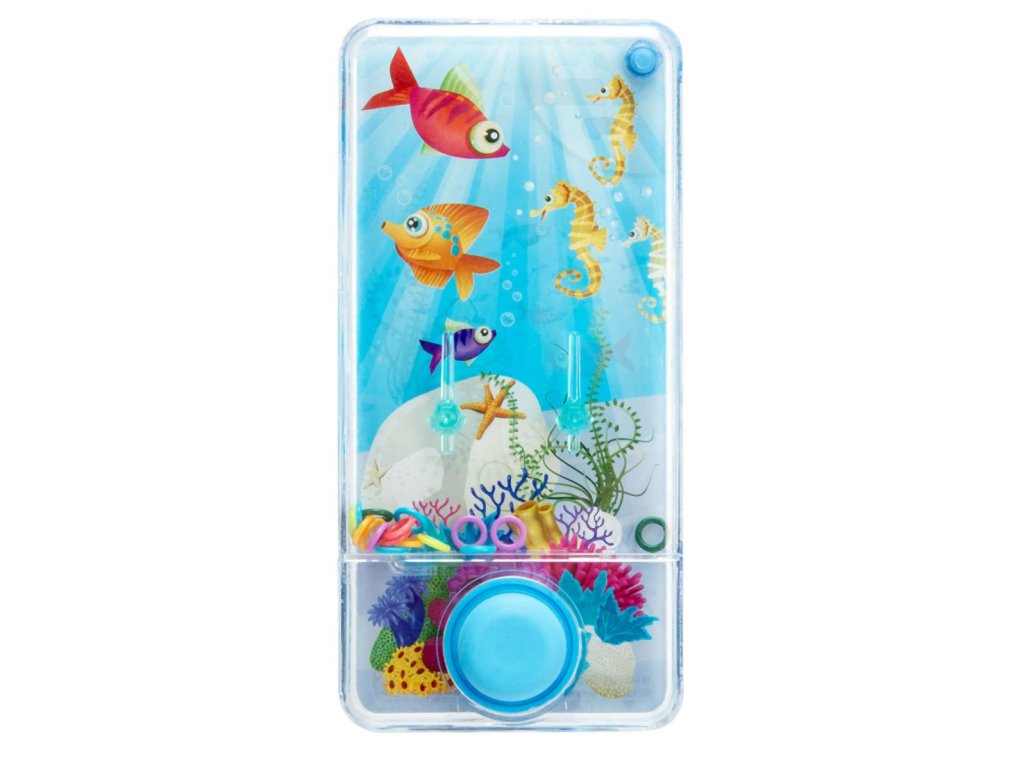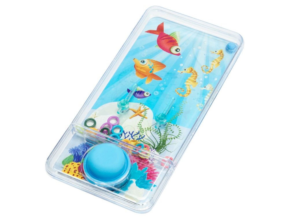 Vodní hra - naplňte vodou a stiskem tlačítka rozprouděte vodu a pokuste se dostat kroužky na své místo. Vhodné pro děti od 3 let. Rozměry 13,5 x 6,5 cm.