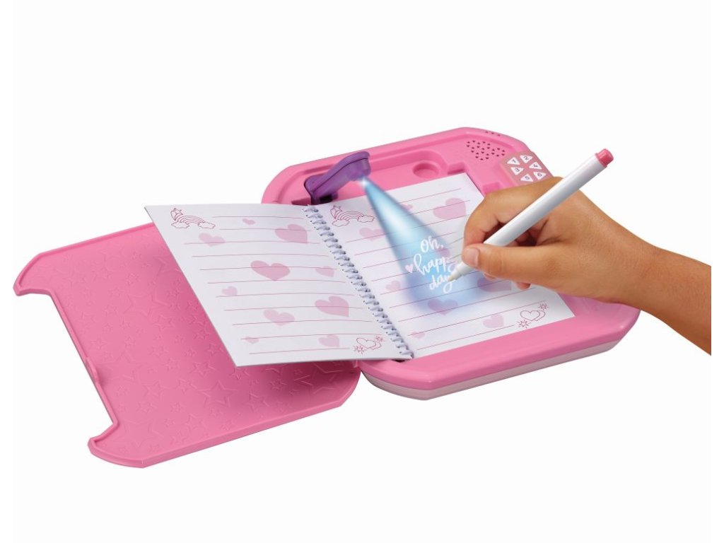 Všechna tajemství si můžeš zapsat do 30 stránkového poznámkového bloku. A to není vše! Pro super tajné poznámky použij neviditelnou tužku. Takto napsanou zprávu lze vidět jen s pomocí kouzelného světla! Ukaž svou kreativitu a vytvoř si vlastní melodie, potrénuj paměť při hraní hry, poznej své šťastné číslo nebo si poslechni recept na štěstí! Tvůj Tajný zápisník je prostě dokonalý!