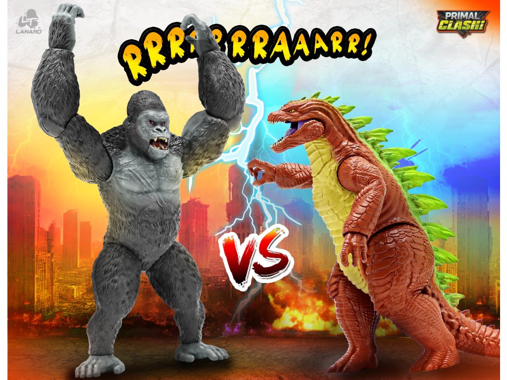 Primal Clash Boss VS King Kaiju souboj příšer. Sada figurek, výška 21 cm. Plně polohovatelné figurky. Pohyblivé čelisti. King Kaiju má připojitelný ocas.