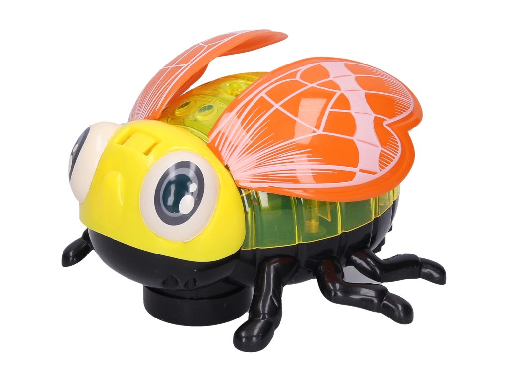Brouček s efekty. Velikost 13,5 cm. Světelné a zvukové efekty, jízda. Aktivace ON/OFF přepínačem v zadní části brouka. 3 x AA baterie nejsou součástí. 3 varianty - modrá, zelená, žlutá.