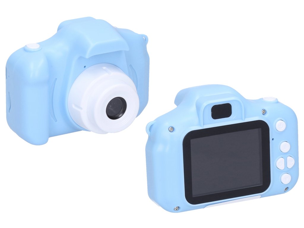 Dětský digitální fotoaparát modrý - foto 48Mpx, video Full HD. Rozměry 8,3x5x6 cm. Rozlišení fotografií 48 megapixelů, videa Full HD (1920x1080). Časovač, vložení času, digitální zoom, různé efekty (rámečky, vložené animace, deformace, filtry) fotografií, hry, mp3 přehrávač, 2,0 palcový displej. Vestavěná 400mAh Li-ion baterie, USB kabel a popruh součástí. Formát fotografií jpg, videa avi. Provoz 80-150 min. Kompatibilní s micro SD kartami - max. 32GB. Paměťová karta není součástí.
