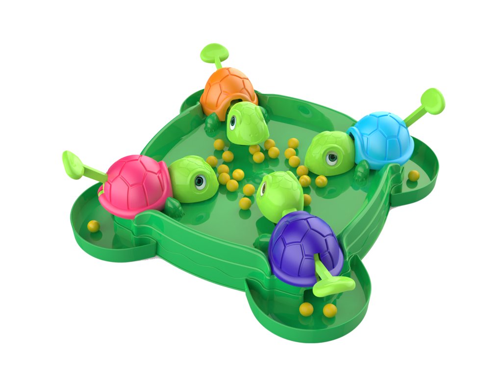 Až 4 hráči. Rozměr hrací plochy 23x23x5 cm. Obsah balení - hrací plocha, 36 kuliček, 8 samolepek očí pro želvičky. Vysypte všechny korálky na hrací plochu a snažte se jich co nejvíce sníst. Želvička, která sní nejvíce korálků, vyhrává. Páčka v zadní části krunýře slouží k ovládání hlavy želvičky.