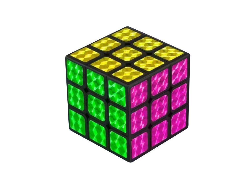 Kostka hlavolam, lesklá. Rozměry 5,3 x 5,3 x 5,3 cm.