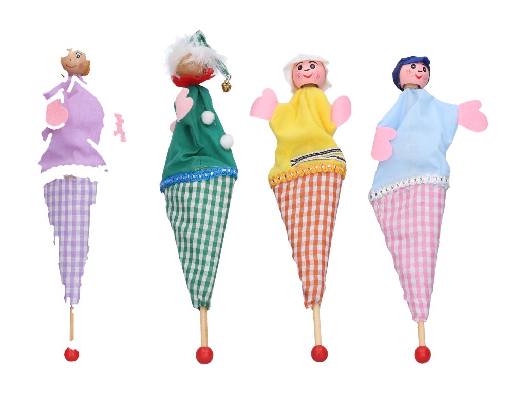Loutka pohádková postava. Velikost 28 cm. Dřevo a textil. Více variant.