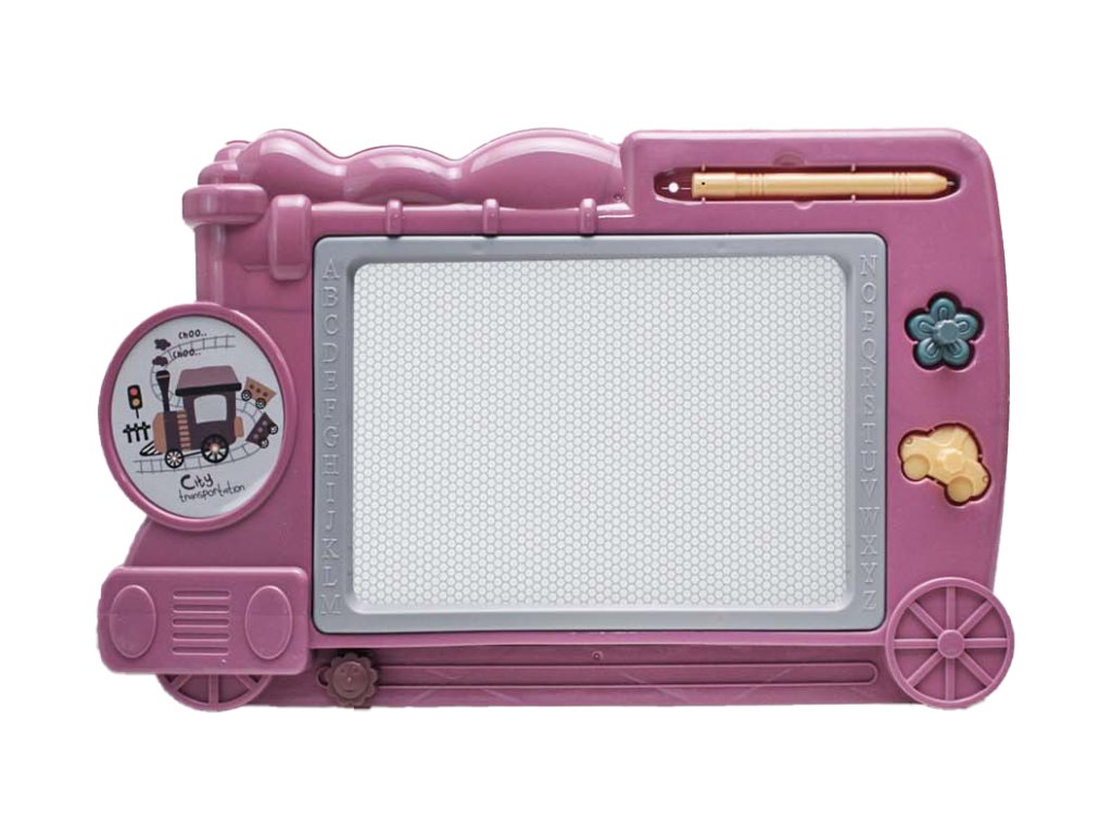 Magická kreslící tabulka. Velikost 33cm. Obrázek se maže posuvníkem. Obsahuje tužku na kreslení, magnetky na razítkování na tabulku.