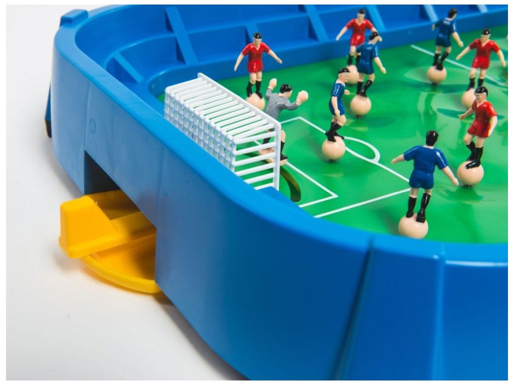 Mají rádi vaše děti fotbal? Tak to je stolní fotbálek ta pravá hra pro ně. Které družstvo dá první gól, kdo vyhraje? To můžete zjistit se stolním fotbálkem, který je zábavnou hrou, která je na trhu již dlouhá léta. Hráči jsou upevnění na pružině a jejím natažením - ohnutím hráče příslušným směrem uvedete balón do pohybu. Můžete se těšit na ručně malované figurky fotbalistů. Dáte gól dřív než vaše děti?