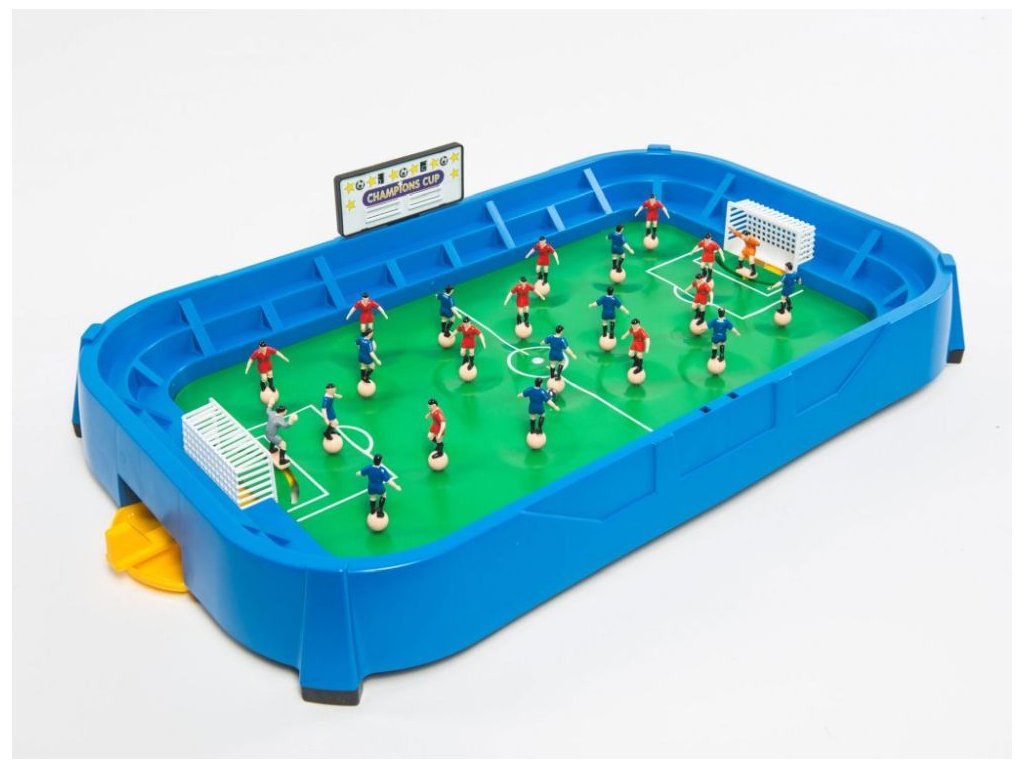 Oblíbená "cvrnkací" stolní hra pro všechny fandy fotbalu. Zahrajte si tento skvělý stolní fotbal doma s kamarády nebo rodiči i během deštivých dnů, kdy nemůžete vyběhnout na trávník. Tento jedinečný stolní fotbal je z kvalitního plastu a týmy jsou složeny z ručně malovaných hráčů. Vyrobeno v ČR. Hračka vhodná pro děti od 5 let.