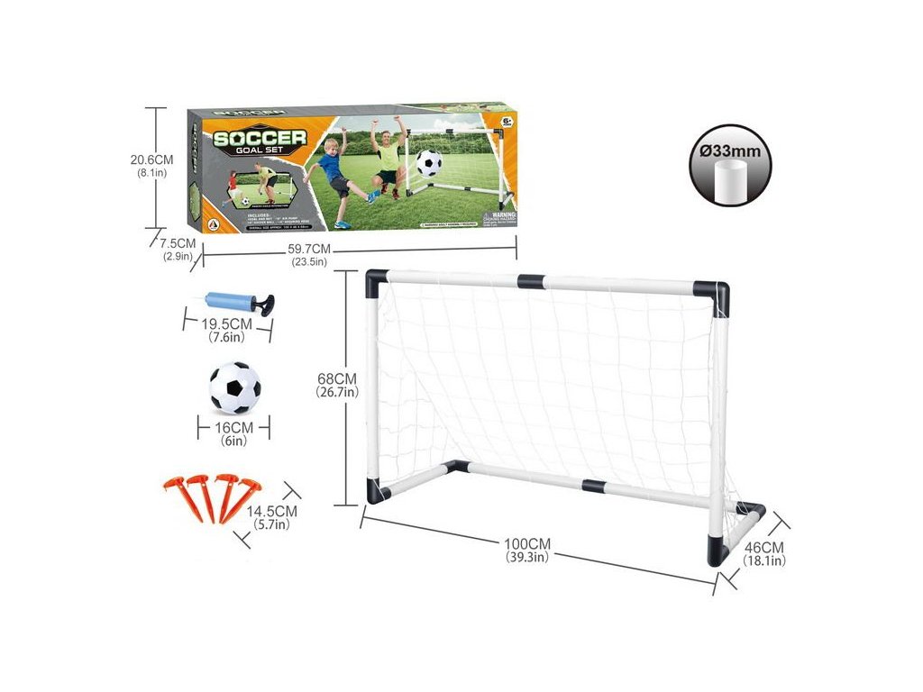 Fotbal set skládací branka 100x68 cm a míč. Rozměry složené branky 100x46x68 cm. Obsah balení - branka, míč, pumpička.