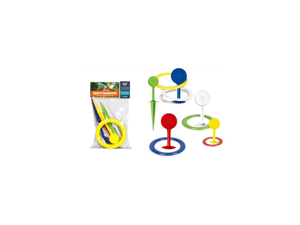 Házení kroužků hra. Obsah balení - 5x kolík 24 cm, 5x kroužek 14,3 cm.