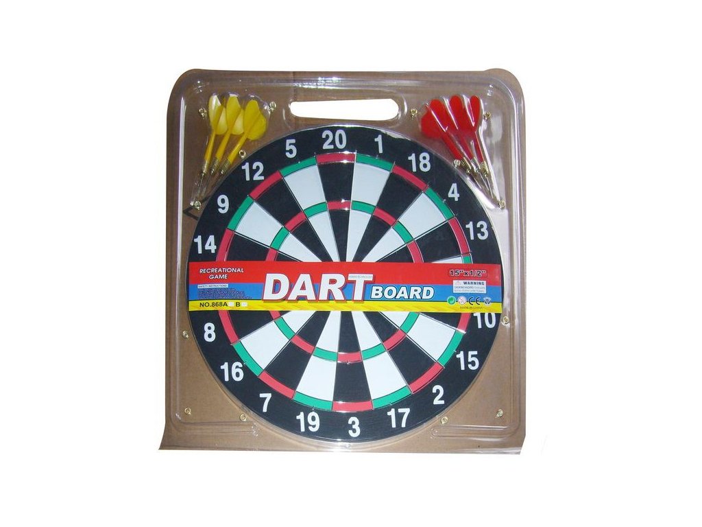 Šipky set 6 šipek. Průměr terče 37 cm. Obsah balení - terč, 3x červená šipka, 3x modrá šipka.