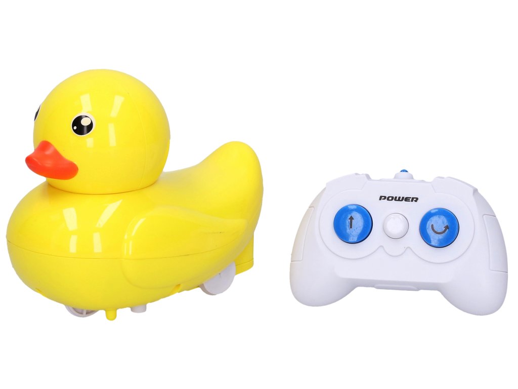 Kachnička do vody RC na dálkové ovládání. Velikost 14 cm. Na ovladači jsou 2 tlačítka (vpřed, zatáčení). Vysoušení - otočit vertikálně zobákem nahoru, jemně třepat. USB nabíjecí kabel. Frekvence 2,4 GHz. Kachna - 3.7V bateriový pack (součástí), ovladač - 2xAAA (není součástí).
