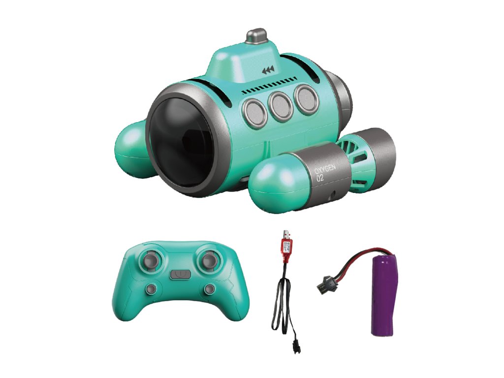 Plavidlo RC na dálkové ovládání. Rozměry 14,5x15,5x11 cm. Nepotápí se. Frekvence 2.4GHz. Světelné efekty. Bateriový pack 3.7V 500mAh Li-ion do plavidla součástí, 2xAA do ovladače nejsou součástí. USB kabel součástí. Výdrž až 25 min, nabíjení 2,5 h, dosah 30 m. Ovladač - obě páčky dopředu - pohyb dopředu, obě páčky dozadu - pohyb dozadu, jedna z páček - zatčení, páčky každá na jinou strany - otáčení o 360 stupňů, levé tlačítko - světelné efekty, pravé tlačítko - demo.