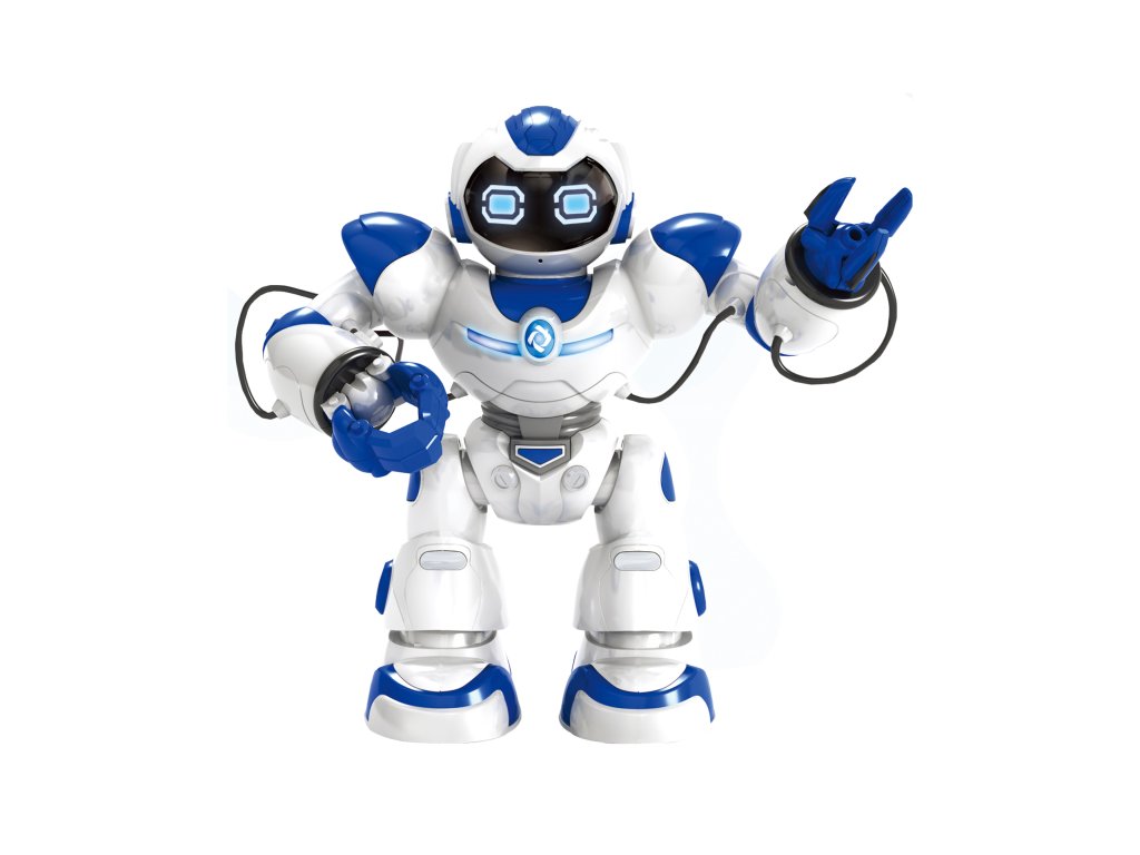 Robot střílející míčky RC na dálkové ovládání. Rozměry 36x17x40 cm. Infračervený port. Světelné a zvukové efekty. Funkce - střílí míčky z levé ruky, drží předměty v pravé ruce, podsvětlený obličej, programování, chůze, tanec, hudba, demo režim, nastavení hlasitosti. Součástí 3 míčky. 5xAA baterie do robota, 2xAA do ovladače nejsou součástí.