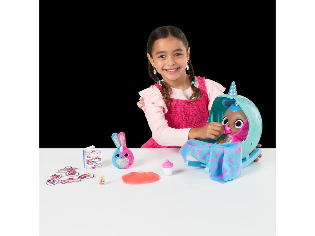 Otevřete jejich kouzelné kolébky a objevte nejroztomilejší magická miminka Rainbocornů, která jsou schovaná ve svých magických postýlkách.