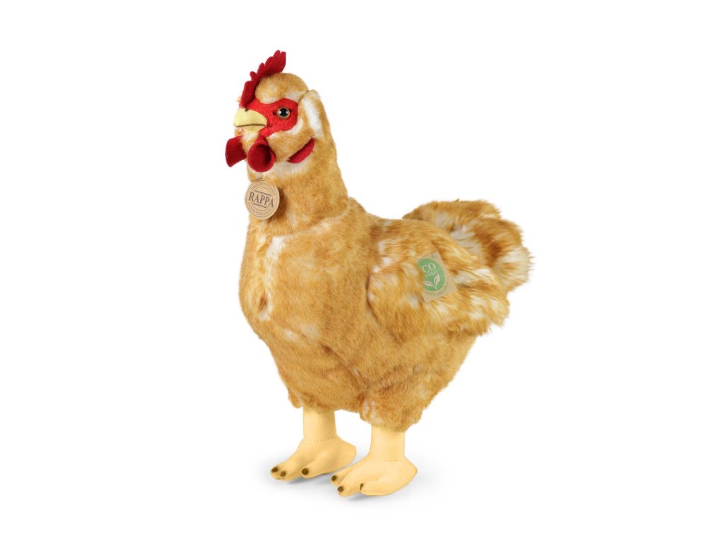 Plyšová slepice s vejcem měří 33 cm a díky těm nejkvalitnějším materiálům se řadí do Exkluzivní kolekce plyšových hraček značky Rappa. Díky ručnímu zpracování každého kusu navíc vypadá jako živá. Proč označení ECO-FRIENDLY? Rappa si je vědoma všech dopadů na životního prostředí, zaměřuje se na udržitelnost a omezení používání plastů na minimum. Proto je výplň hraček vyrobena z recyklovaných materiálů, zejména PET lahví. Ta je však zcela nezávadná a vhodná i pro děti od narození. FUN FACT: Věděli jste, že slepice mají velmi dobrou paměť a poznají až kolem 100 různých tváří?