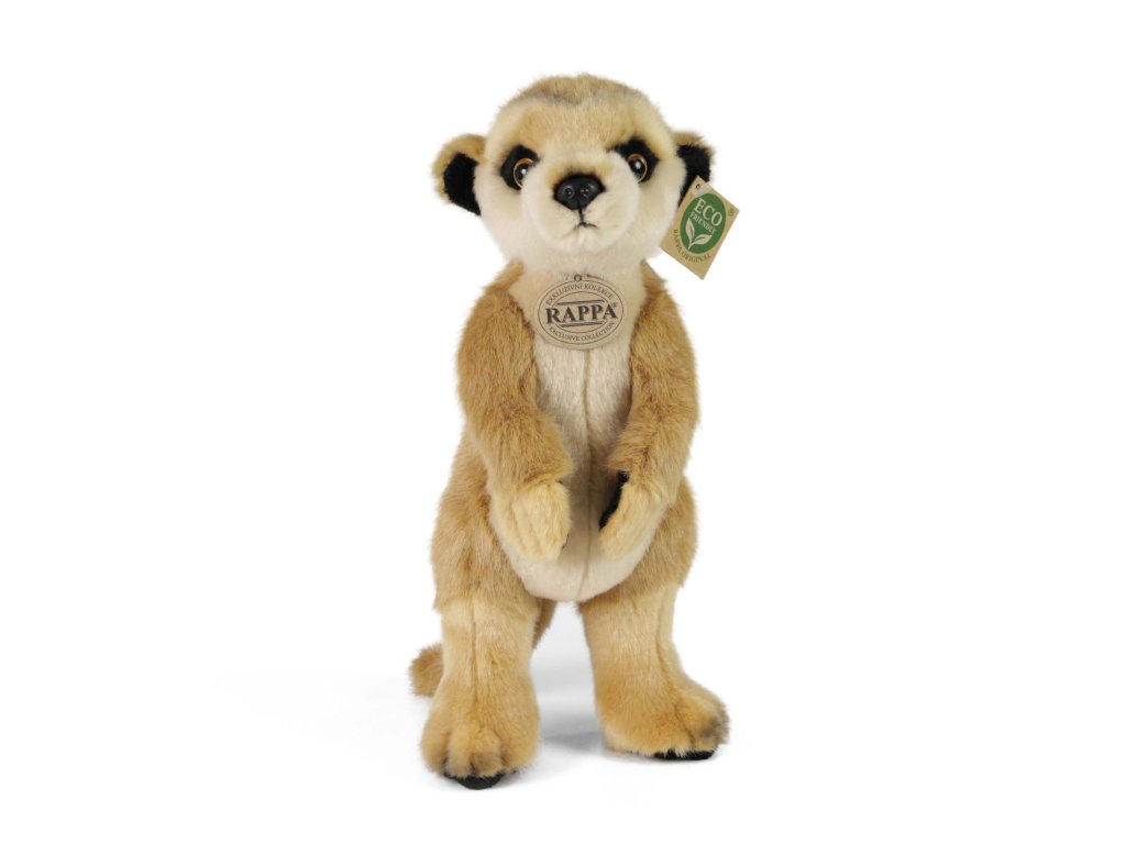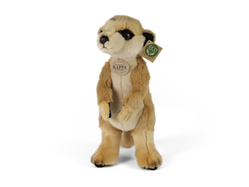 Plyšová surikata měří 30 cm a díky těm nejkvalitnějším materiálům se řadí do Exkluzivní kolekce plyšových hraček značky Rappa. Díky ručnímu zpracování každého kusu navíc vypadá jako živá. Proč označení ECO-FRIENDLY? Rappa si je vědoma všech dopadů na životního prostředí, zaměřuje se na udržitelnost a omezení používání plastů na minimum. Proto je výplň hraček vyrobena z recyklovaných materiálů, zejména PET lahví. Ta je však zcela nezávadná a vhodná i pro děti od narození. FUN FACT: Věděli jste, že v každé skupině surikat je vždy někdo na stráži – stojí vzpřímeně a dává pozor na predátory?