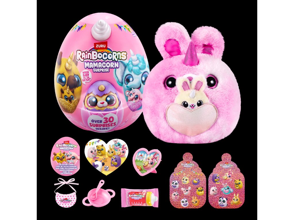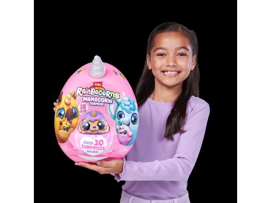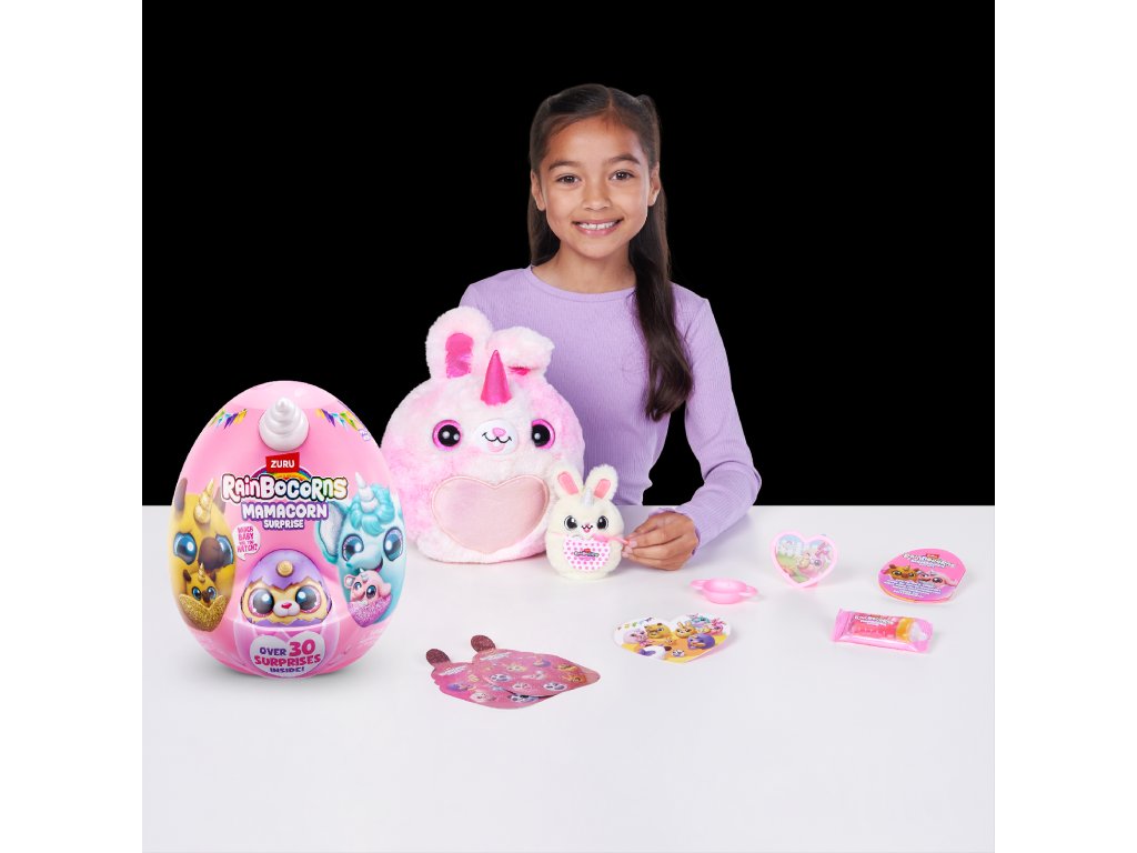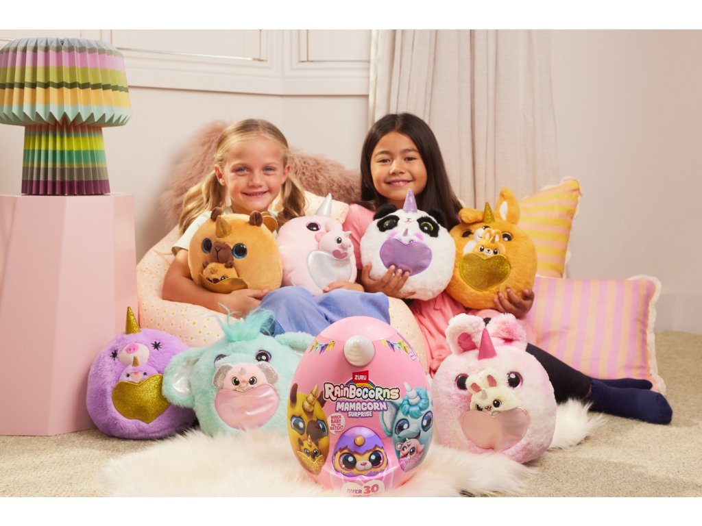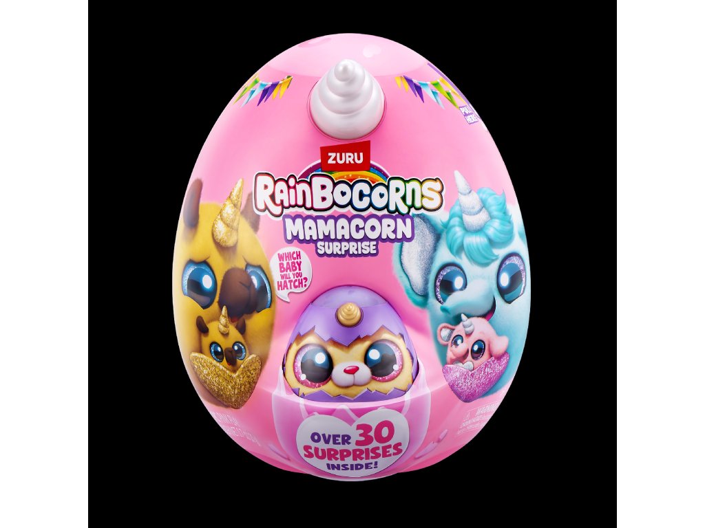 Rainbocorns Mamacorn Surprise přináší do světa Rainboville novou kouzelnou maminku! Rozbijte barevné vajíčko a objevte více než 30 překvapení. Uvnitř na vás čeká jeden ze sedmi roztomilých plyšáků Mamacorn a také tajemné miminko - které z nich se vylíhne právě vám?
