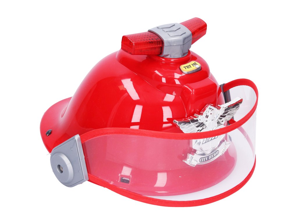 Tato hasičská helma za použití baterií vydává světelné a zvukové efekty.
