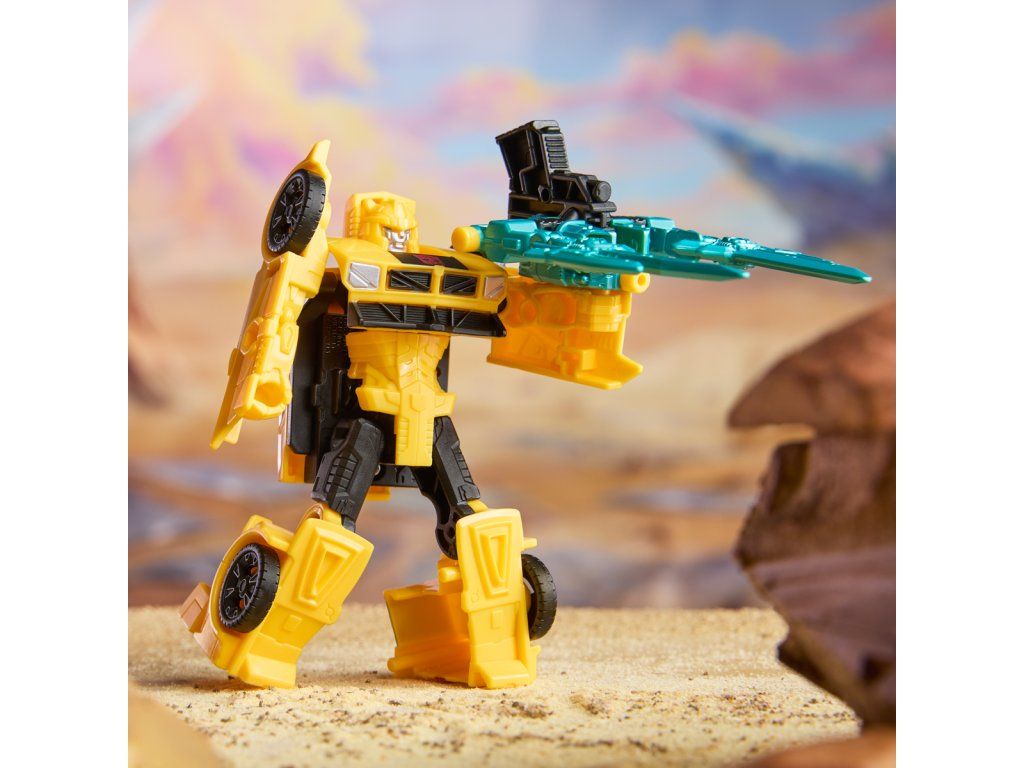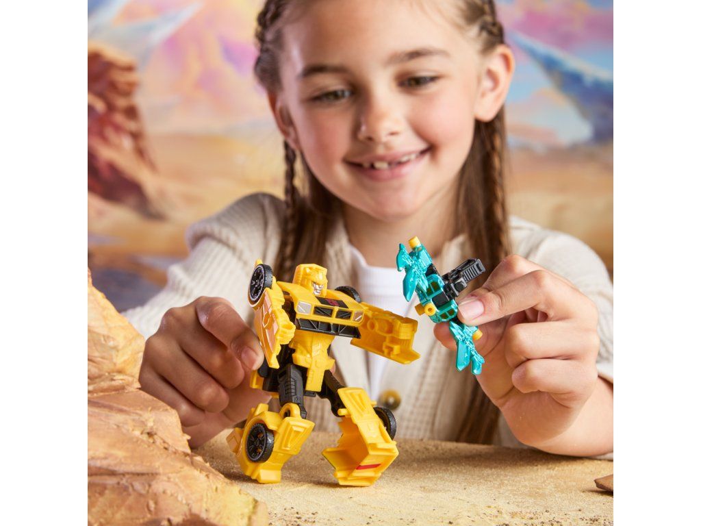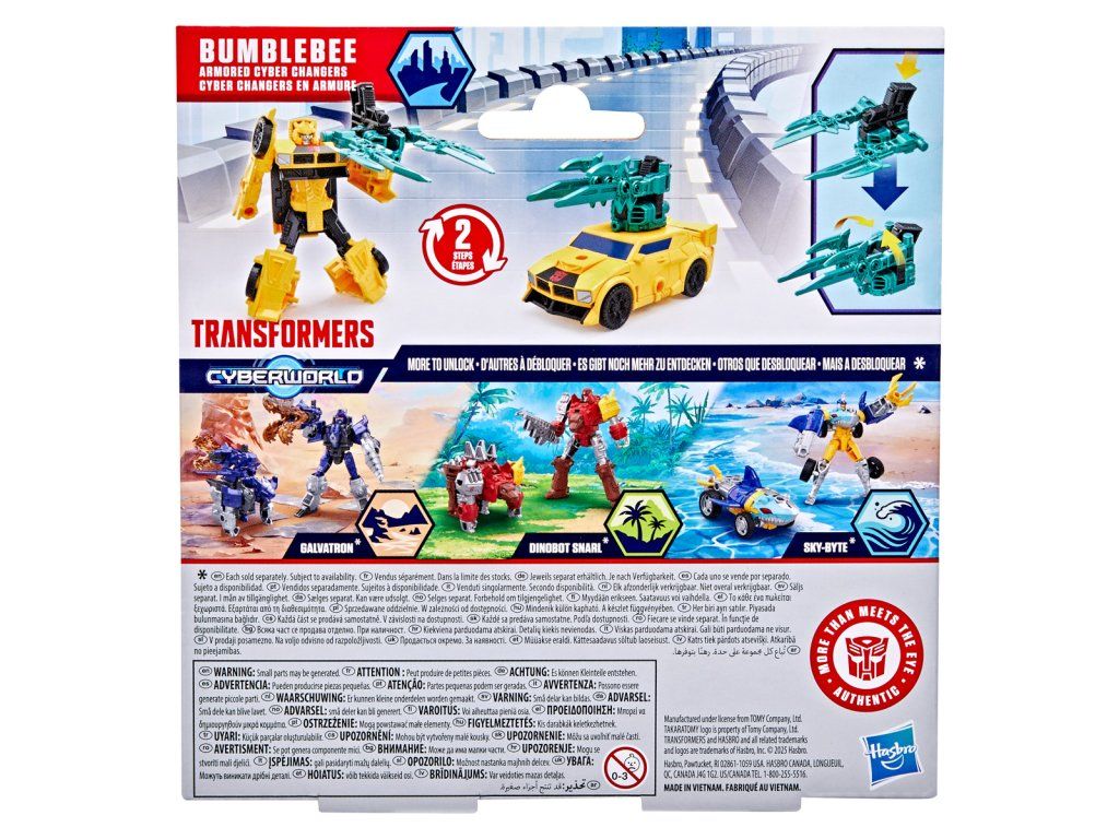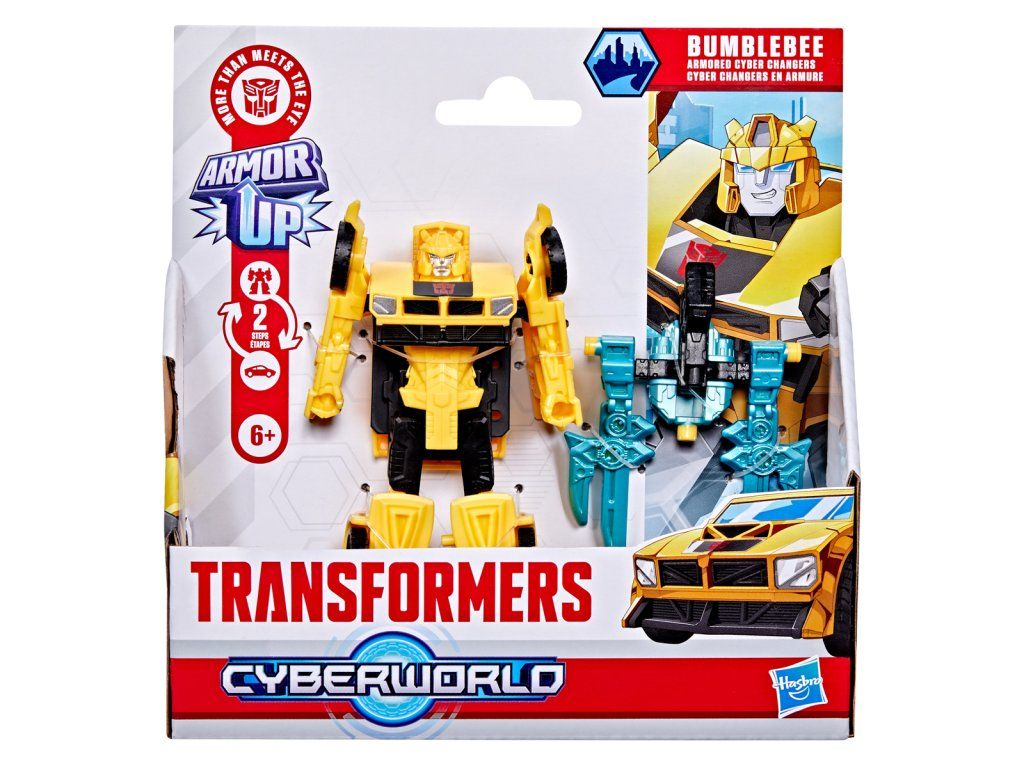 Transformers Cyberworld - Armored Cyber Changers vám přináší známé tváře a nové bojové strategie! Posilte se svými oblíbenými Autoboty a Decepticony, zatímco bojují o galaktickou nadvládu. Akční figurka Bumblebee se snadno promění z robota na alternativní mód auta ve 2 krocích. Přeměna ve 2 krocích je dostatečně jednoduchá, aby ji děti zvládly samy. V režimu robota je figurka vysoká přibližně 10 cm a je polohovatelná. Součástí figurky je blaster, který má dva úžasné režimy a lze jej připevnit k figurce v režimu robota i auta. Vyrobeno z kvalitního plastu. Rozměry balení: 18,1 x 17,7 x 4,9 cm. Věk: 6+