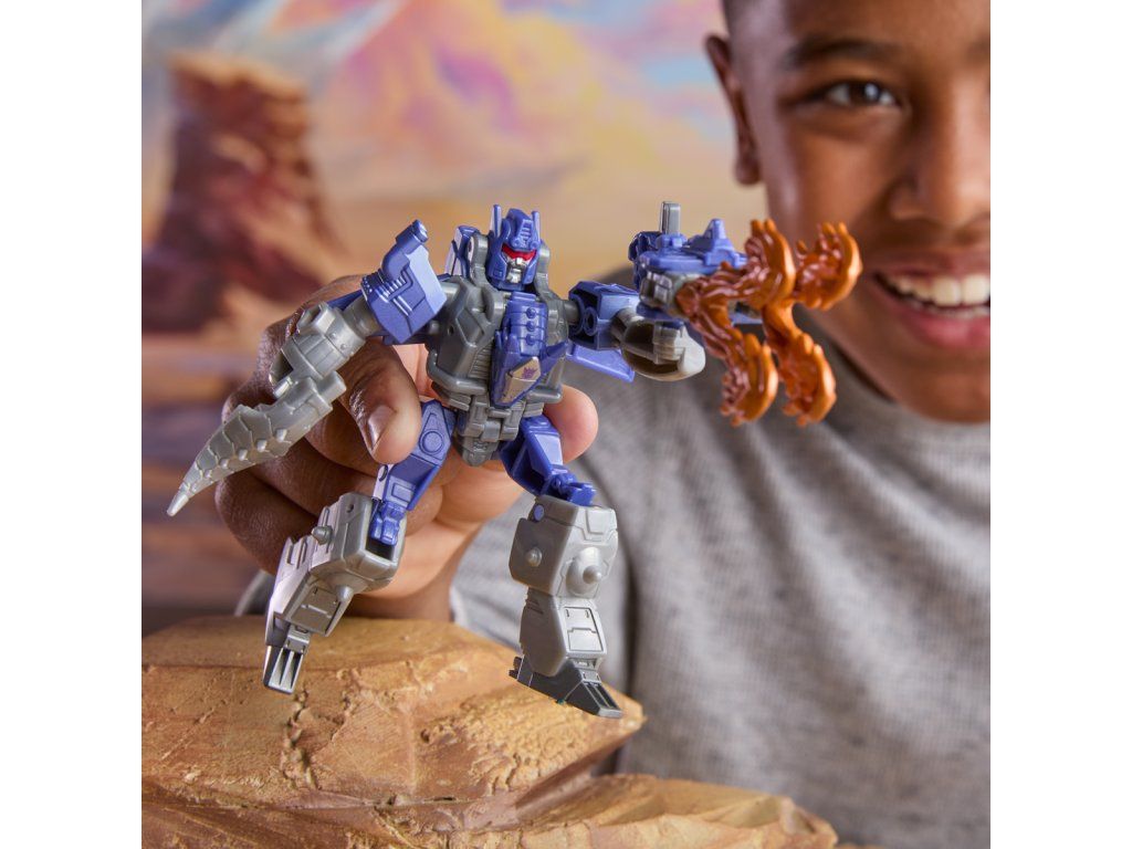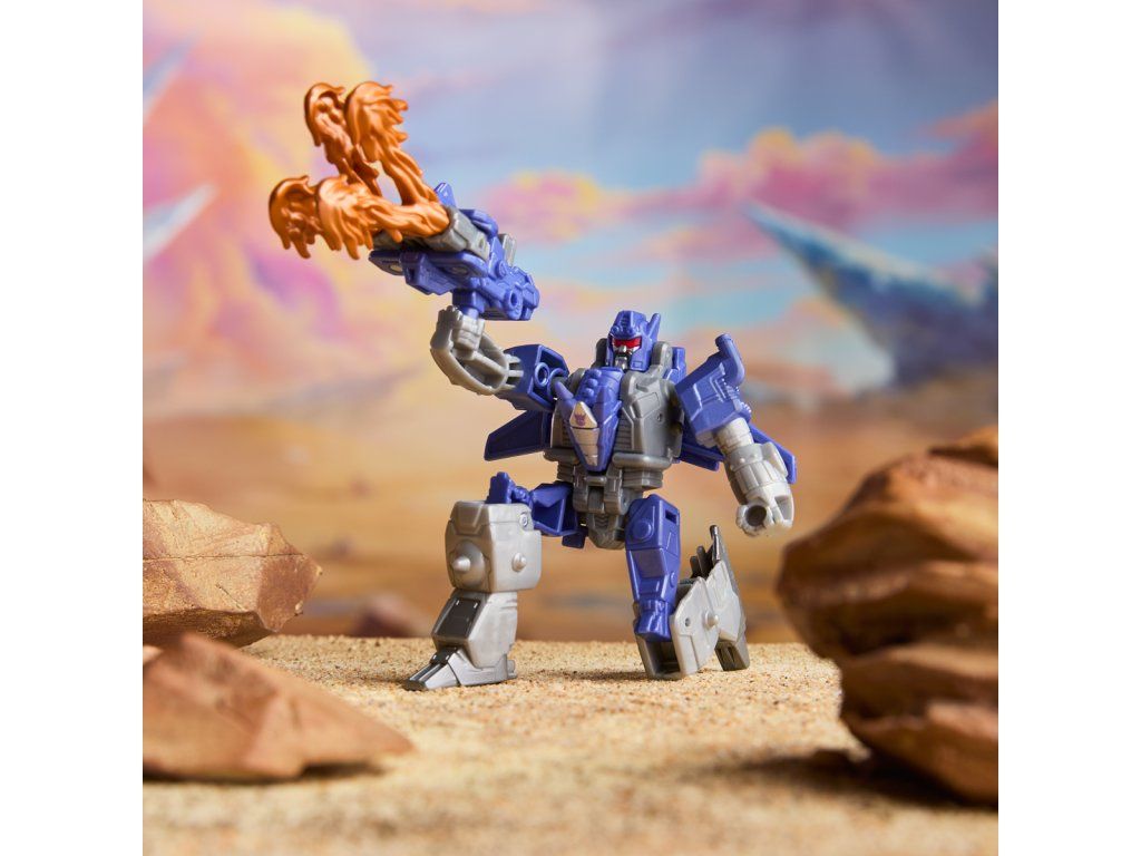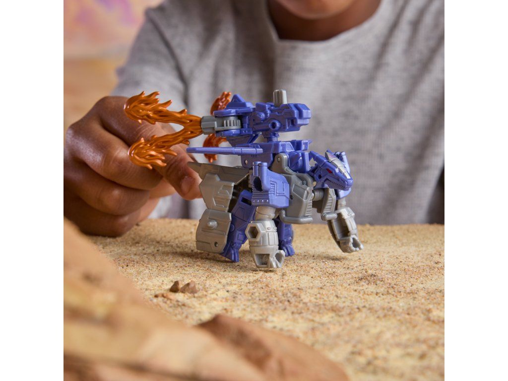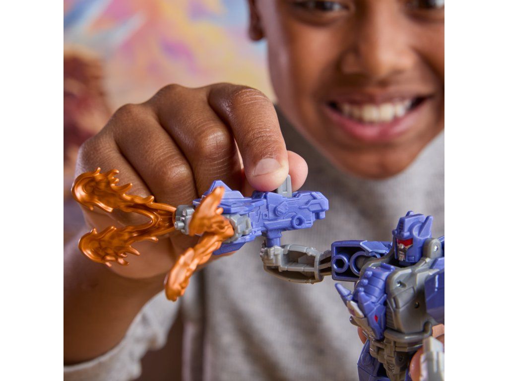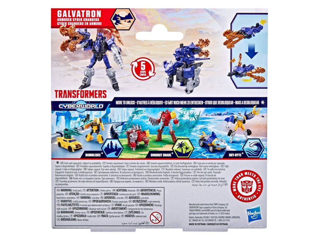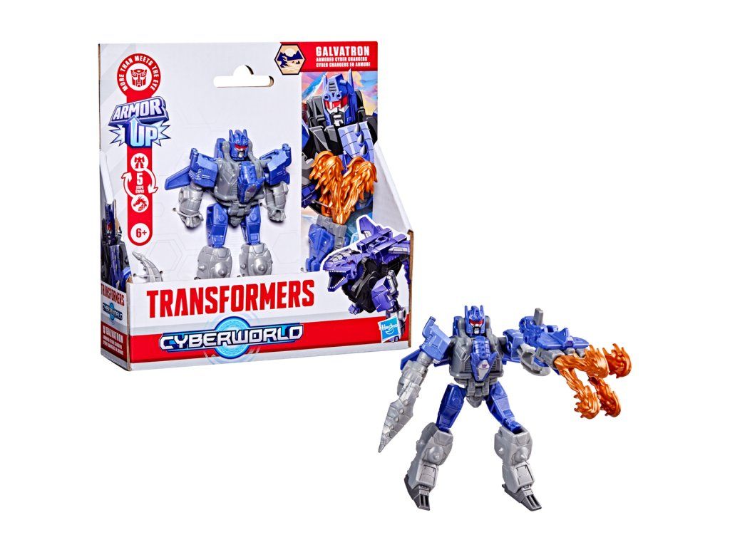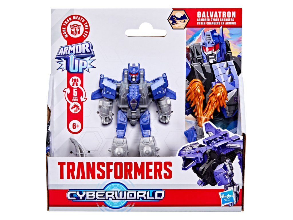 Transformers Cyberworld - Armored Cyber Changers vám přináší známé tváře a nové bojové strategie! Posilte se svými oblíbenými Autoboty a Decepticony, zatímco bojují o galaktickou nadvládu. Akční figurka Galvatron se snadno promění z robota na alternativní mód draka v 5 krocích. Přeměna v 5 krocích je dostatečně jednoduchá, aby ji děti zvládly samy. V režimu robota je figurka vysoká přibližně 10 cm a je polohovatelná. Součástí figurky je blaster, který má dva úžasné režimy a lze jej připevnit k figurce v režimu robota i draka. Vyrobeno z kvalitního plastu. Rozměry balení: 18,1 x 17,7 x 4,9 cm. Věk: 6+