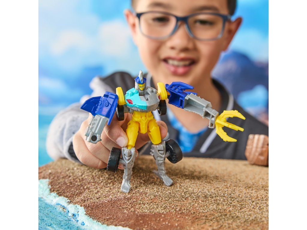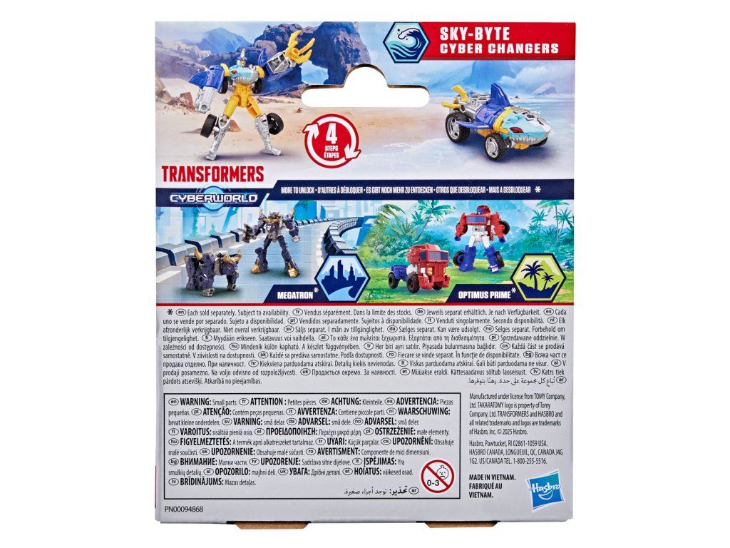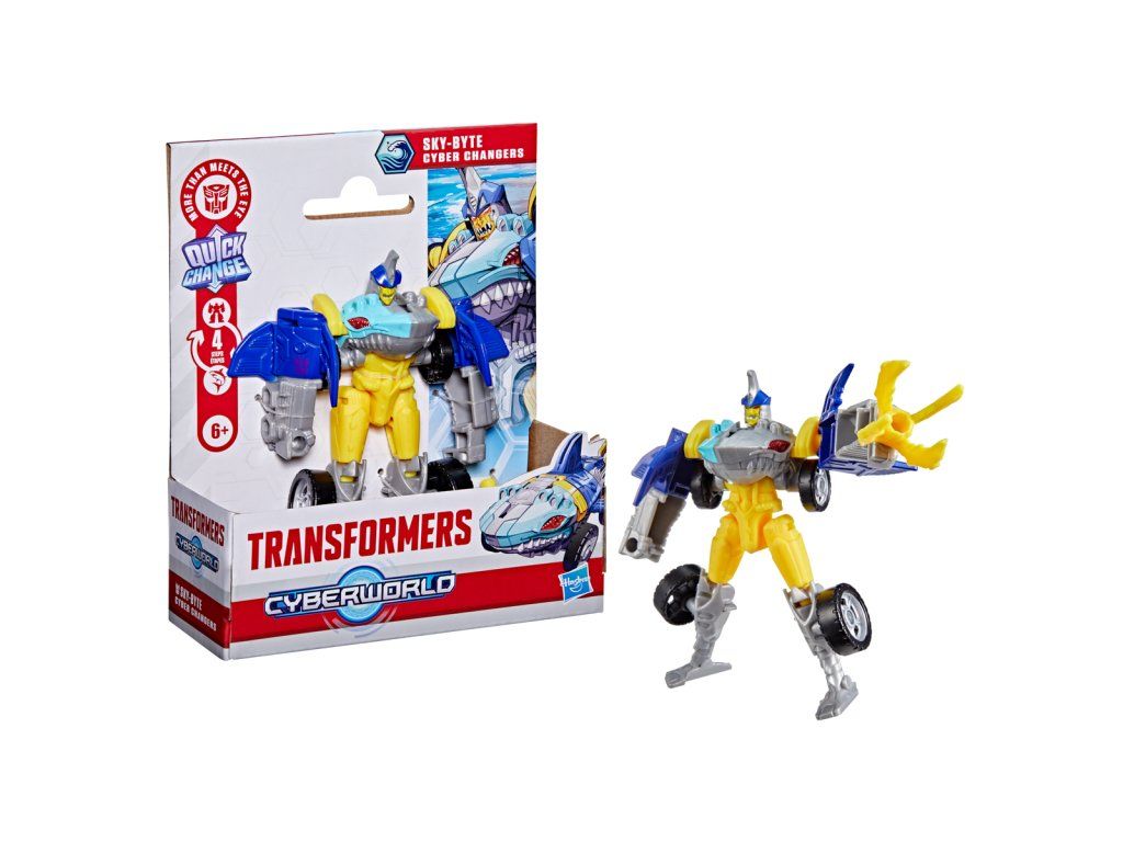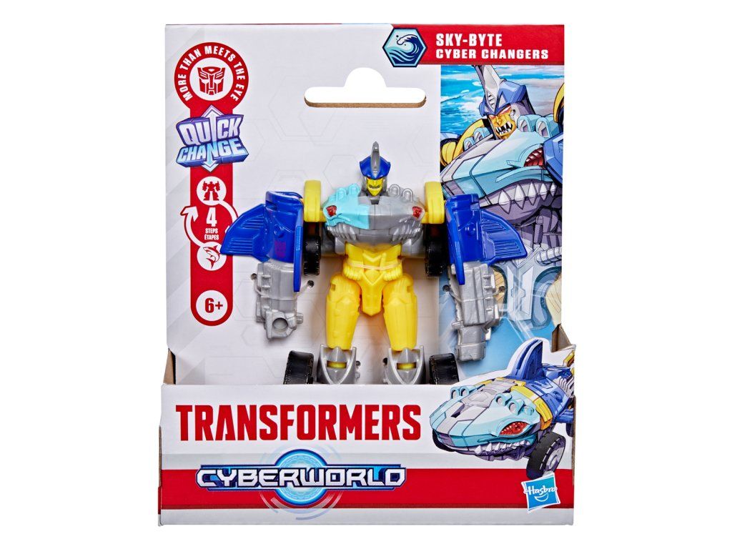 Transformers Cyberworld - Cyber Changers přináší roboty v přestrojení do zcela nové úrovně boje! Staří známí – oblíbené postavy, Autoboti a Decepticoni, kteří možná vypadají trochu povědomě, se vracejí do akce. Akční figurka Sky-Byte se snadno promění z robota na alternativní mód žraloka ve 4 krocích. Přeměna ve 4 krocích je dostatečně jednoduchá, aby ji děti zvládly samy. V režimu robota je figurka vysoká přibližně 10 cm a je polohovatelná. Vyrobeno z kvalitního plastu. Rozměry balení: 15,08 x 12,7 x 4,9 cm. Věk: 6+