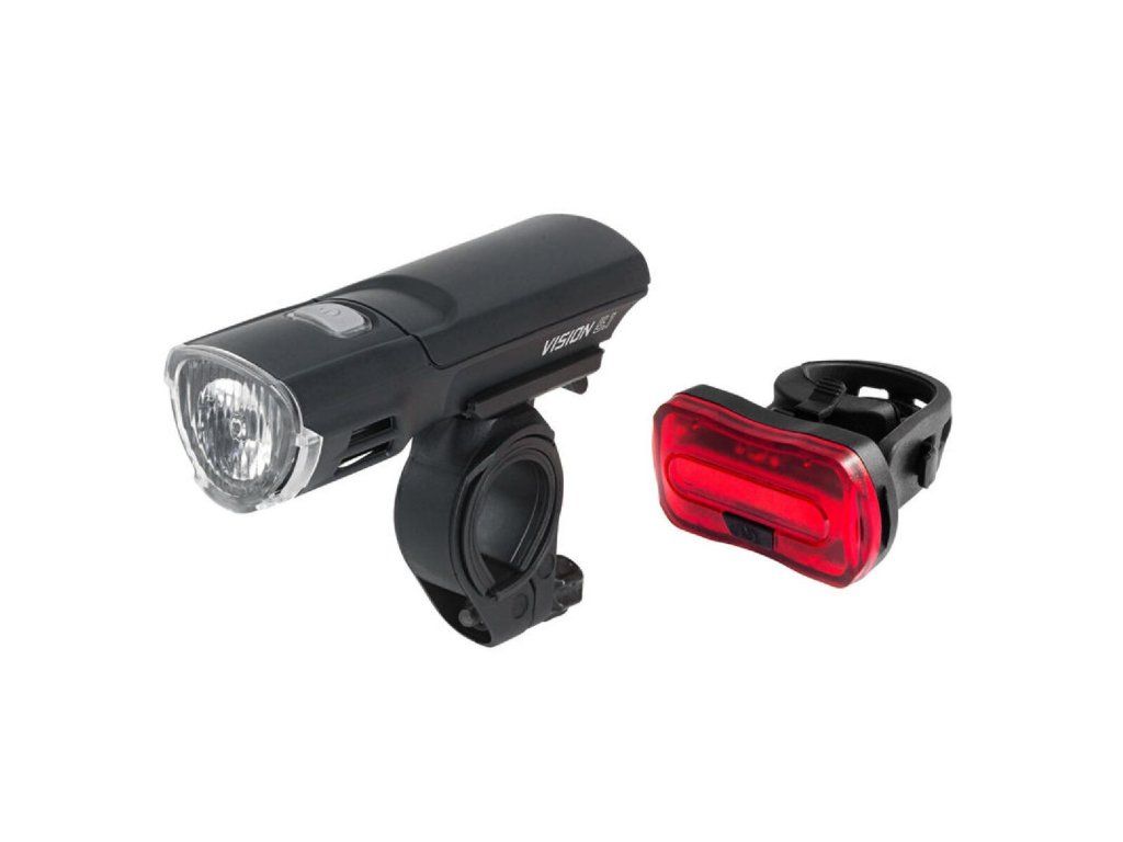 Sada osvětlení na kolo ONE Vision 5.1 Set obsahuje přední i zadní světlo. Obě světla mají voděodolnou konstrukci a jejich montáž i demontáž je jednoduchá a rychlá. Přední světlo má extrémně jasnou, bílou CREE LED dioda 3 W a 3 funkce – 2 intenzity svícení a blikání. Zadní světlo má vysoce výkonné červené COB LED diody se 2 funkcemi – stálé svícení a blikání. Baterie jsou součástí balení. Přední světlo - extrémně jasná bílá CREE LED dioda 3 W - 3 funkce – 2 intenzity svícení, blikání - dosvit cca 40 m - doba svícení až cca 80 h - voděodolná konstrukce - montáž bez nářadí - napájení 3x baterie AAA (součástí balení) Zadní světlo - vysoce výkonné červené COB LED diody - 2 funkce – stálé svícení, blikání - vodorovné i svislé umístění - napájení 2x baterie CR2032 (součástí balení)