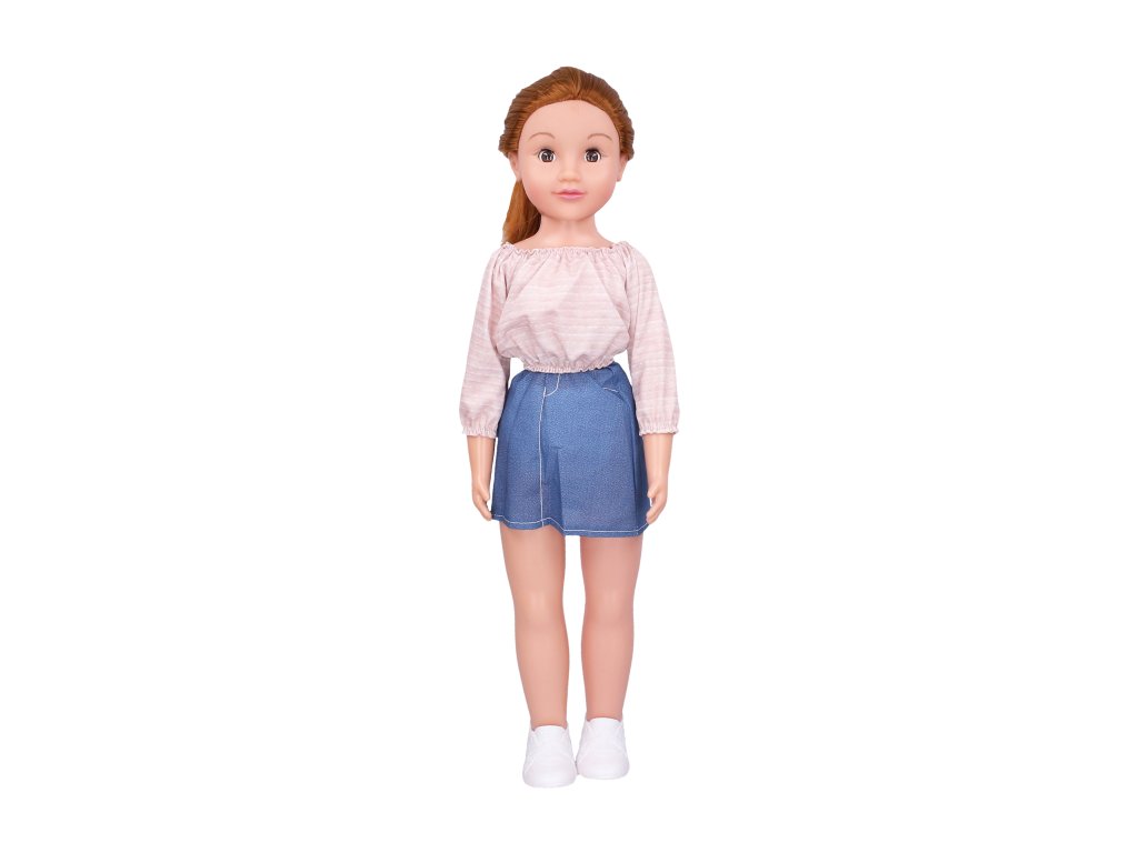 Chodící panenka. Velikost 70 cm. Mrkací oči. Džínová sukně.