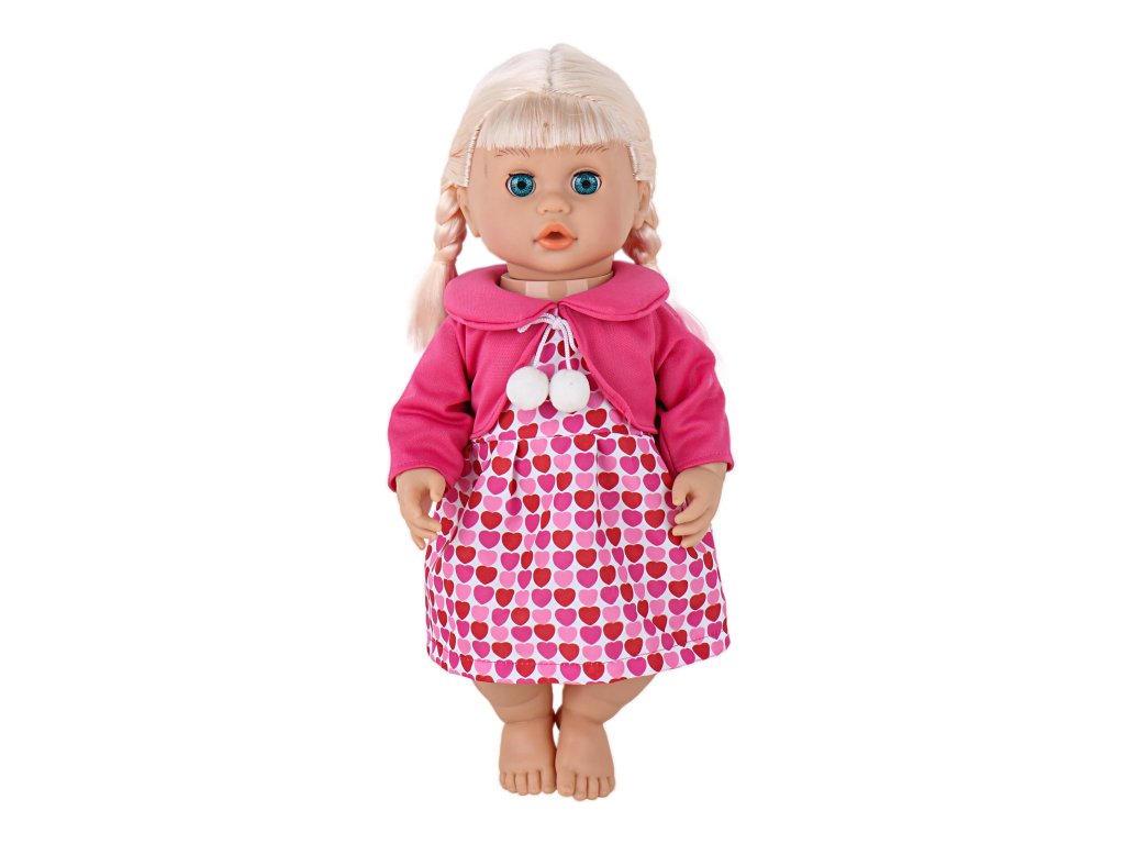 Panenka opakující. Velikost 40cm. 2xAA baterie nejsou součástí. Návod na obale. Po zmáčknutí pravé ruky zazní zvuk a panenka začne nahrávat. Mluvte k panenčiným ústům. Dalším zmáčknutí pravé ruky zazní dvojitý zvuk a nahrávání je u konce. Zmáčknutím levé ruky panenka přehraje nahrávku.