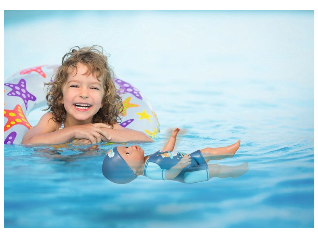 Panenka – chlapeček se sportovním duchem je jako opravdový malý delfín. V kurzu dětského plavání se hned naučil plavat kraula i motýlka. Když plave kraul, střídá ve vodě jednu ruku za druhou, u motýlka rukama hýbe nastejno. A to vše bez baterií! Stačí Plaváčkovi natáhnout ruce dozadu a je připraven na další závod. Když mu ruce uvolníš, začne ve vodě plavat. Nohy a hlava malého plavce jsou také pohyblivé, takže Plaváček může sedět na okraji bazénu a pozorovat třeba trénink skoků do vody.