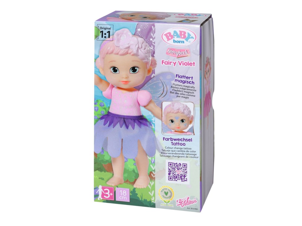 BABY born Storybook Fialková víla je panenka velikosti 18 cm. Součástí je kouzelná hůlka, pódium, kulisy a obrázková knížka.