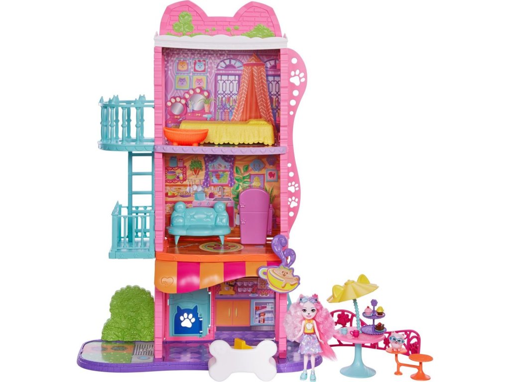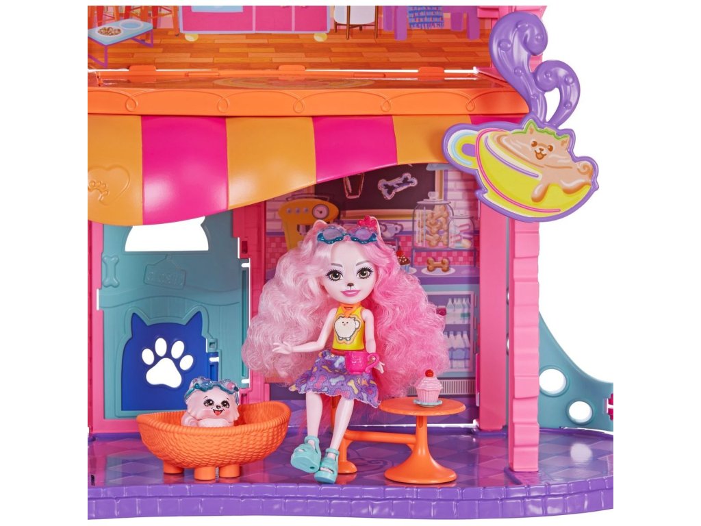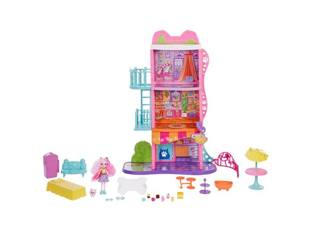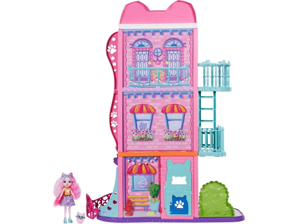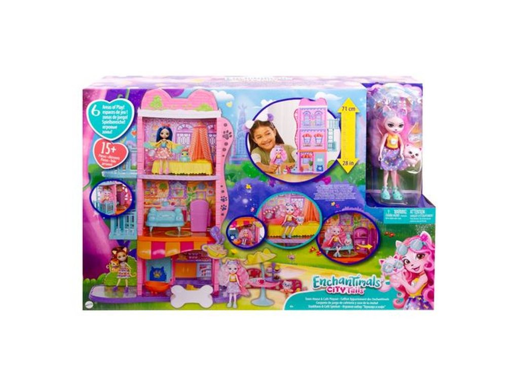Herní set Enchantimals™ Byteček ve městě (70 cm) je ideálním místem pro posezení po náročném dni. Díky 3 patrům, 6 hracím plochám a s více než 15 doplňky je tento set plný nekonečného hraní. Součástí je také panenka Palmer Pomořanská (15 cm) a její nejlepší zvířecí mazlíček, se kterými si děti můžou přehrávat množství příběhů.