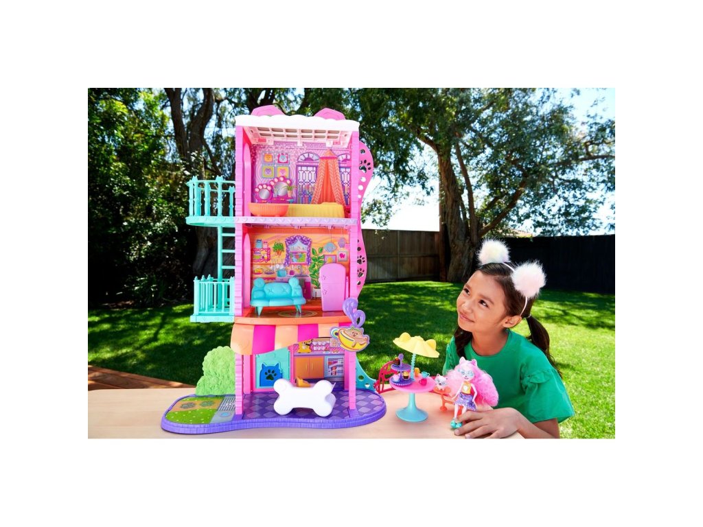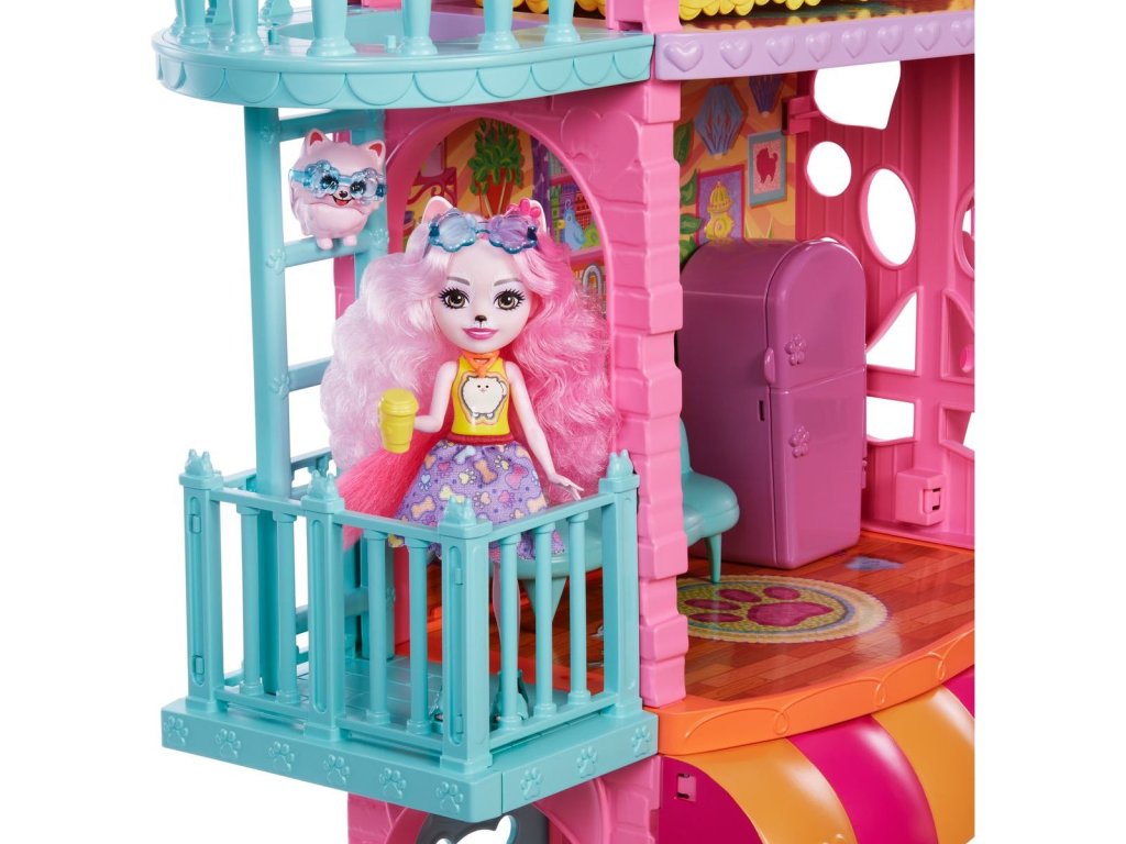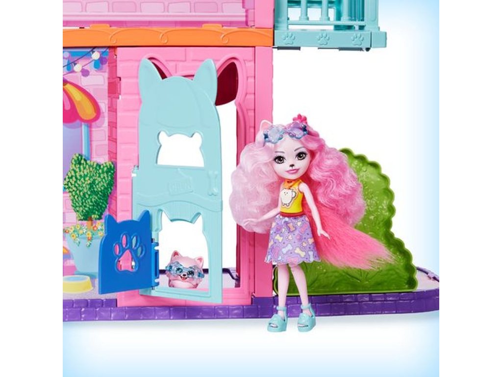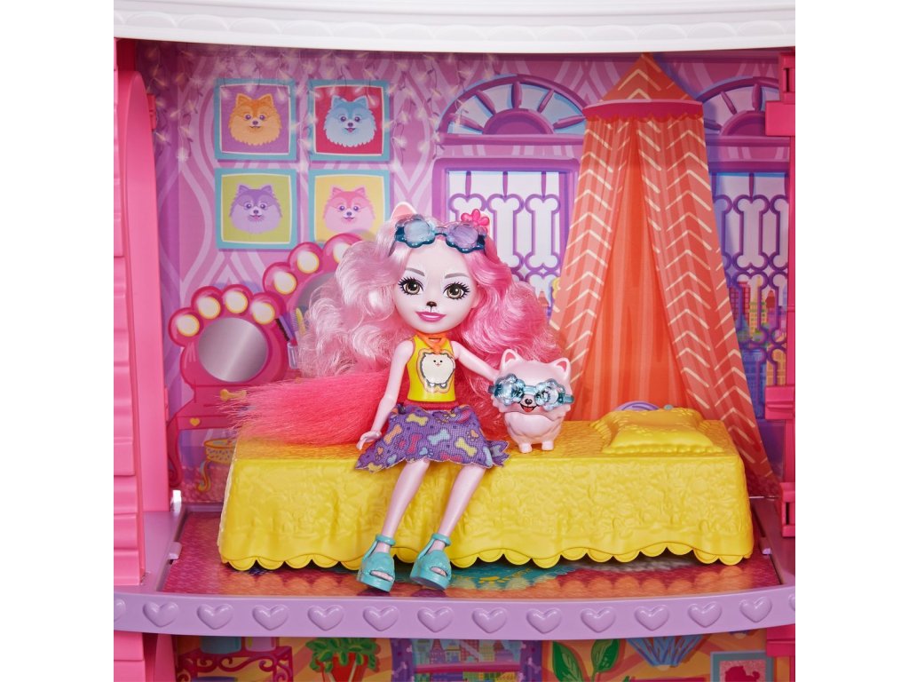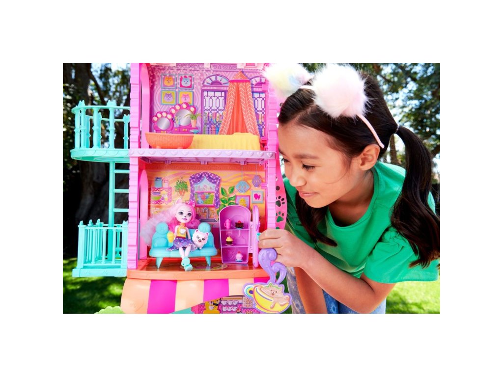 Herní set Enchantimals™ Byteček ve městě (70 cm) je ideálním místem pro posezení po náročném dni. Díky 3 patrům, 6 hracím plochám a s více než 15 doplňky je tento set plný nekonečného hraní. Součástí je také panenka Palmer Pomořanská (15 cm) a její nejlepší zvířecí mazlíček, se kterými si děti můžou přehrávat množství příběhů.