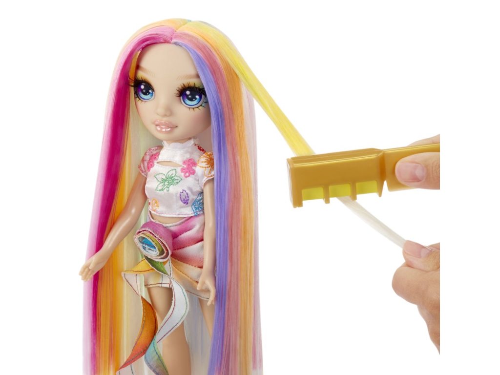 Staň se kadeřníkem s panenkami Rainbow High! Děti a fanoušci panenek Rainbow High si zamilují nekonečné možnosti úpravy vlasů panenek. Každá panenka má extra dlouhé, snadno česatelné vlasy, které můžeš upravovat do různých stylů, a navíc v balení dostaneš hřebeny s barevnými křídami pro vytváření duhových odstínů na vlasech. Barvy můžeš snadno opláchnout a znovu vytvářet nové účesy!