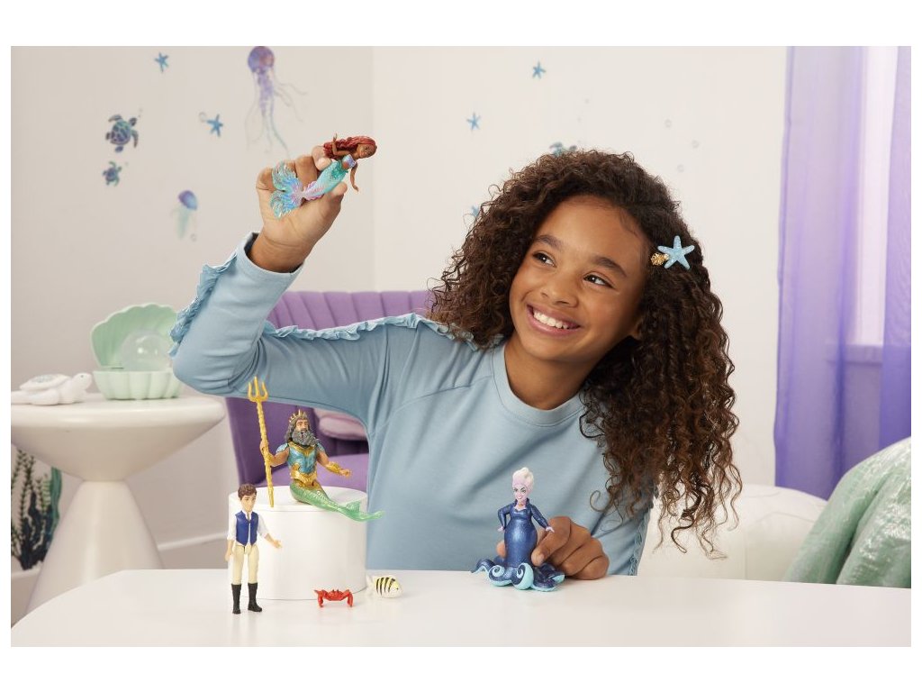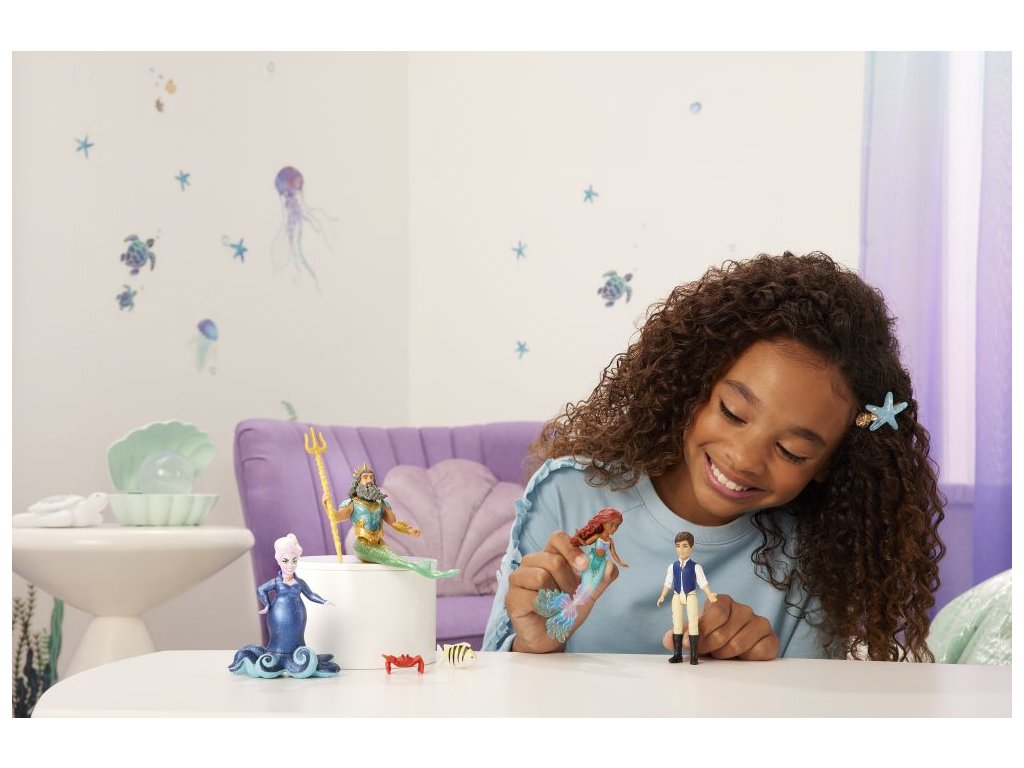 Prozkoumejte kouzelný svět Malé mořské víly novým vzrušujícím způsobem! Tato kolekce šesti malých panenek obsahuje Ariel, jejího tatínka a další kamarády a hrdiny inspirované hraným filmem společnosti Disney Malá mořská víla.