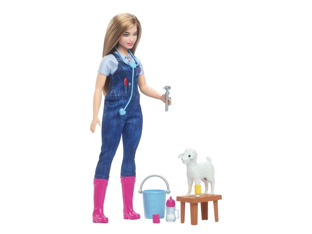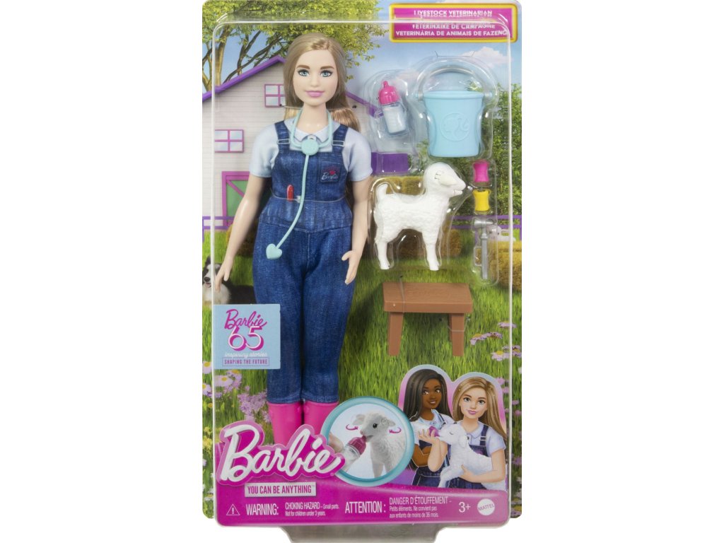 Oslavte 65. výročí panenky Barbie® s kolekcí panenek, které vyzdvihují nejoblíbenější povolání dětí. Panenka farmářka má na sobě profesionální obleček a dodává se s 10 tematickými doplňky, z nichž jeden má zábavnou pohyblivou funkci - ovce při krmení z lahvičky vyplázne jazyk a zdvihne uši! Prodávají se samostatně dle aktuální nabídky. Panenka neumí samostatně stát. Barvy a vzhled výrobku se mohou lišit.