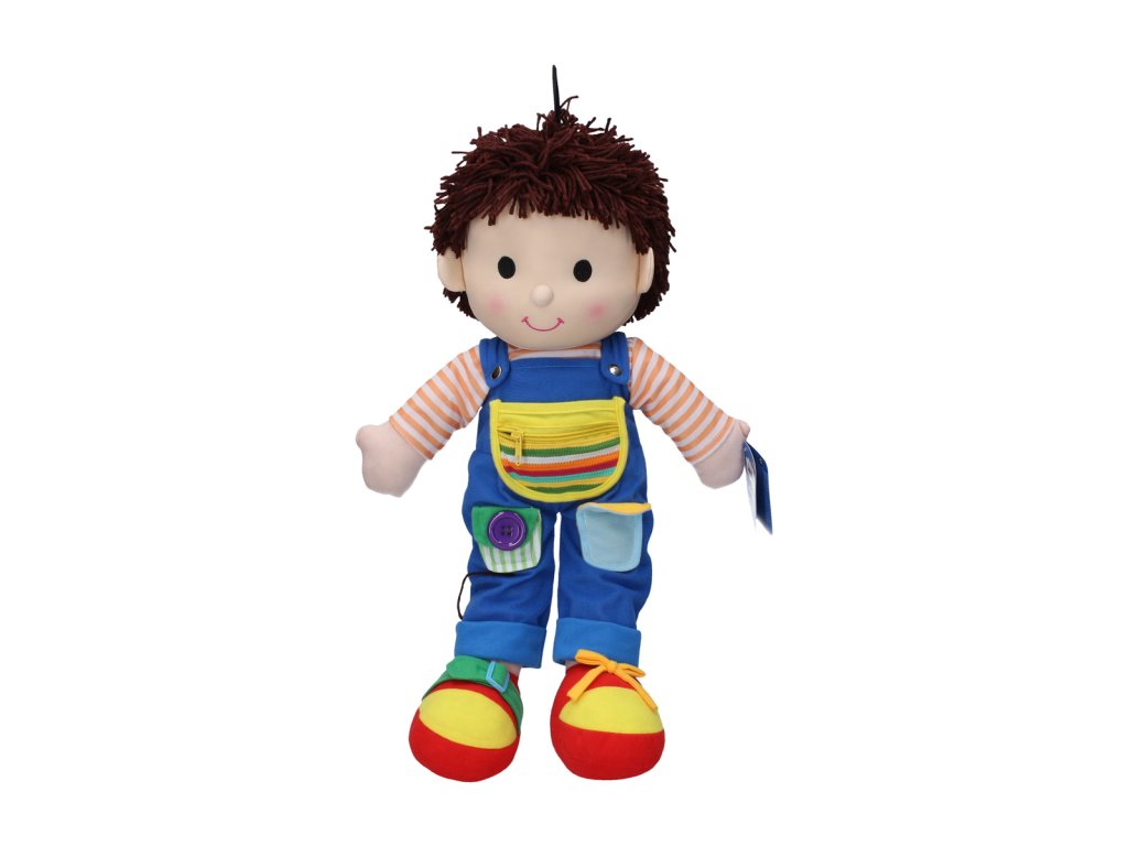 Hadrový zpívající panáček Jonášek – roztomilý panáček o velikosti 55 cm, který děti potěší veselými písničkami. Zpěv se aktivuje tlačítkem na bříšku – 1 stisk spustí píseň, další ji vypne a opětovný stisk pustí další. Panáček zpívá 5 oblíbených dětských písní: Já do lesa nepojedu (0:25), Kolo kolo (0:25), Okolo Hradce (0:30), Komáři se ženili (0:21), Zajíček (0:15). Baterie: 3x LR44, které jsou součástí. Rozměry balení: 56 x 36 x 14 cm. Věk: 3+