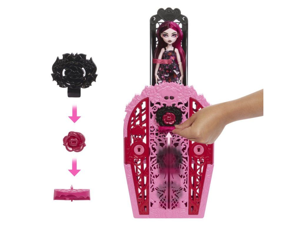 Vyřešte záhadu, odemkněte brány Monster High™ a odhalte panenku z kolekce Skulltimate Secrets: Záhadná zahrada! Děti si mohou hrát na strašidelné detektivy a hledat stopy na mapě pomocí "kouzelného" klíče s lupou. Cestou objeví více než 19 překvapení a zažijí děsivě zábavný zážitek při rozbalování! Každá panenka se prodává samostatně v závislosti dostupnosti.