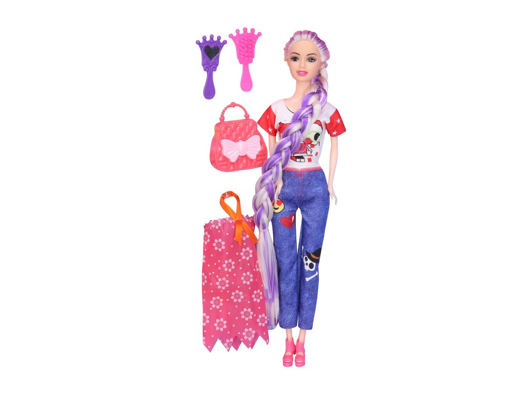 Panenka s kabelkou. velikost panenky 29cm. Obsahuje: panenku, kabelku, hřeben, zrcátko, šaty