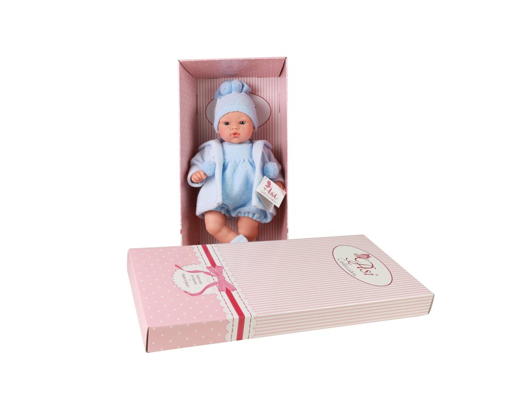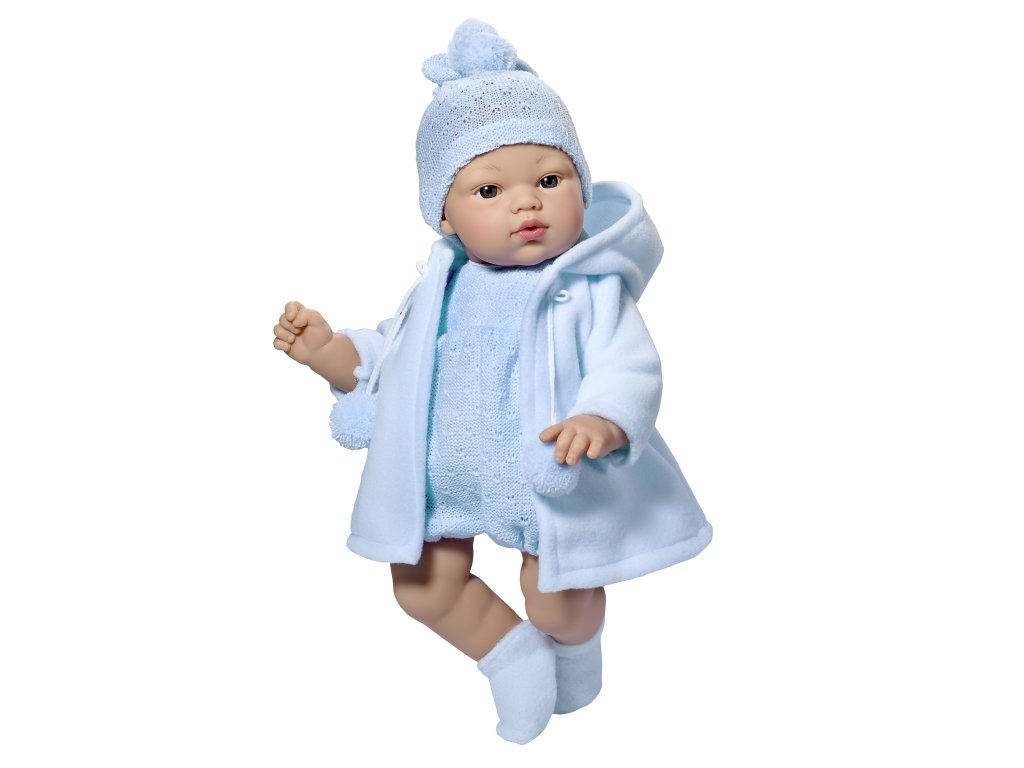 Krásné realistické miminko chlapeček Koke, chlapečkem je jenom podle oblečku, panenky s látkovým tělíčkem nemají vyznačené pohlaví. Koke je vyrobeno firmou Asivil ve Španělsku. Miminko je dlouhé 36 cm a má měkké - látkové tělíčko, hlava a končetiny jsou vyrobeny z vinylu. Koke nemá vlásky, má nemrkací akrylové oči hnědé barvy. Koke je oblečený do modrého pleteného overálku bez rukávů a nohavic, přes který má teplý modrý kabátek zavazovaný u krku na bambulky. Na hlavě má pletenou čepičku a na nohou světle modré ponožky. Asivil je rodinný podnik, který se více jak 50 let pyšní výrobou vysoce kvalitních panenek, známých pod značkou ASI. Panenky jsou ještě krásnější tím, že se firma zavázala ke 100% španělské řemeslné výrobě, splňující všechny evropské výrobní normy. Jejich produkty kombinují tradici i moderní trendy. Panenka je balena v dárkové krabici a splňuje bezpečnostní a zdravotní normy (CE). Doporučeno pro děti od 3 let.