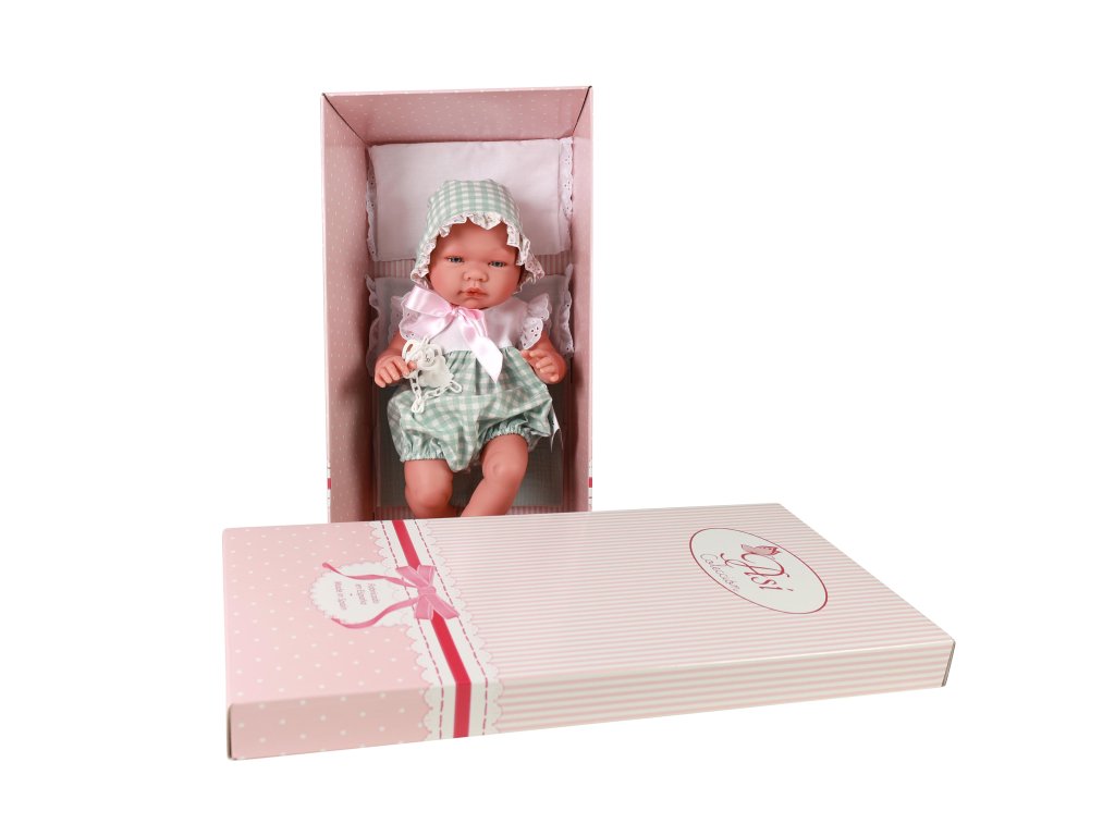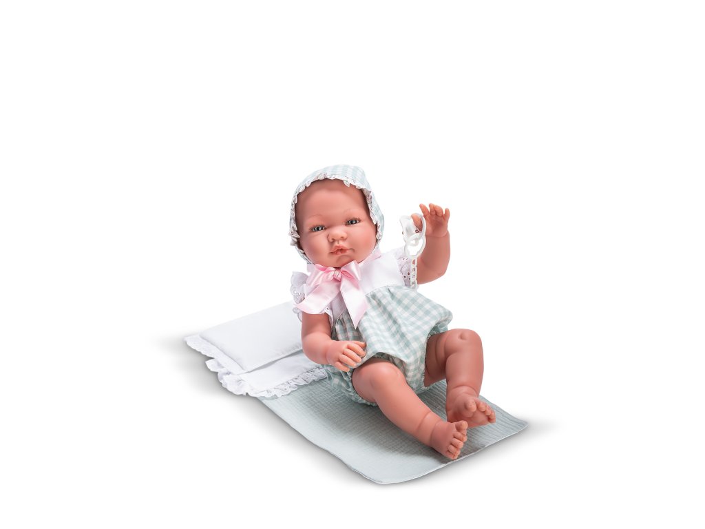 Krásné realistické miminko chlapeček Pablo je vyrobeno firmou Asivil ve Španělsku. Miminko je 43 cm dlouhé, má tvrdé - vinylové tělíčko, propracované do všech detailů, včetně pohlaví. Má nemrkací akrylové oči a nalepené řasy. Pablo nemá vlásky, má nemrkací akrylové oči modré barvy a nalepené řasy. Pablo je oblečen do zeleno-bílého overálku bez rukávů a s krátkými nohavicemi, na hlavě má čepičku na zavazování. Obleček je zdobený bílou krajkou. Chlapeček leží na polštářku a peřince, má dudlík na řetízku, který je možné vložit do pusinky a drží tam. Asivil je rodinný podnik, který se více jak 50 let pyšní výrobou vysoce kvalitních panenek, známých pod značkou ASI. Panenky jsou ještě krásnější tím, že se firma zavázala ke 100% španělské řemeslné výrobě, splňující všechny evropské výrobní normy. Jejich produkty kombinují tradici i moderní trendy. Panenka je balena v dárkové krabici a splňuje bezpečnostní a zdravotní normy (CE). Doporučeno pro děti od 3 let.