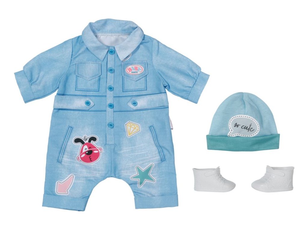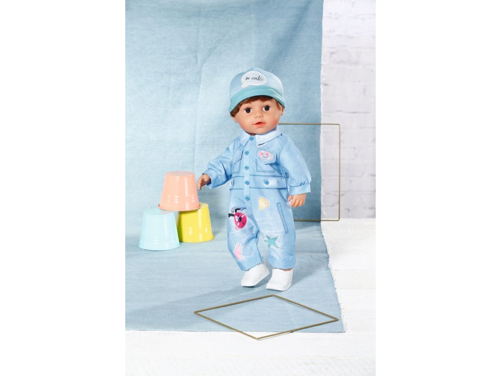 BABY born Džínový overal Deluxe pro panenky velikosti 43 cm. Součástí je overal, čepička a boty.