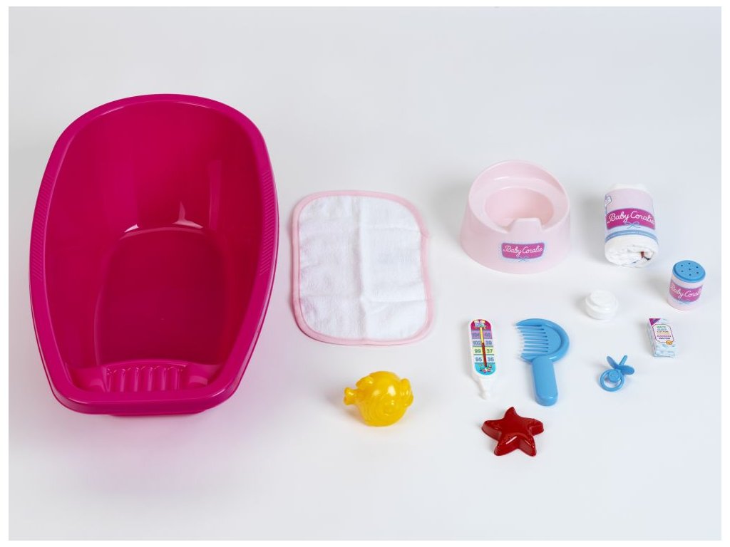 Velká vanička pro panenky s příslušenstvím 12 kusů, které potřebuje maminka k péči o své miminko. Pro panenku o velikosti max 50 cm. Vhodné pro děti od 3 let.