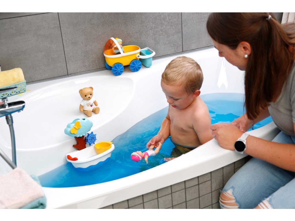 Díky mechanické funkci plavání a vlastní vaničce přináší Medvídek Teddy ke každému koupání spoustu zábavy.