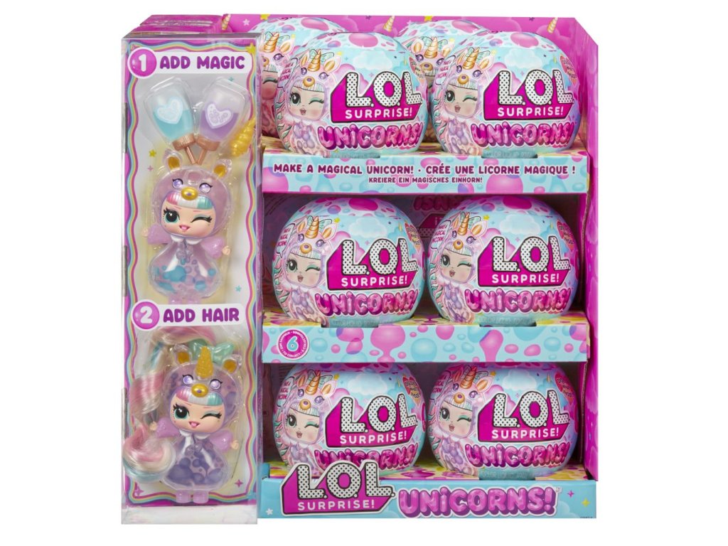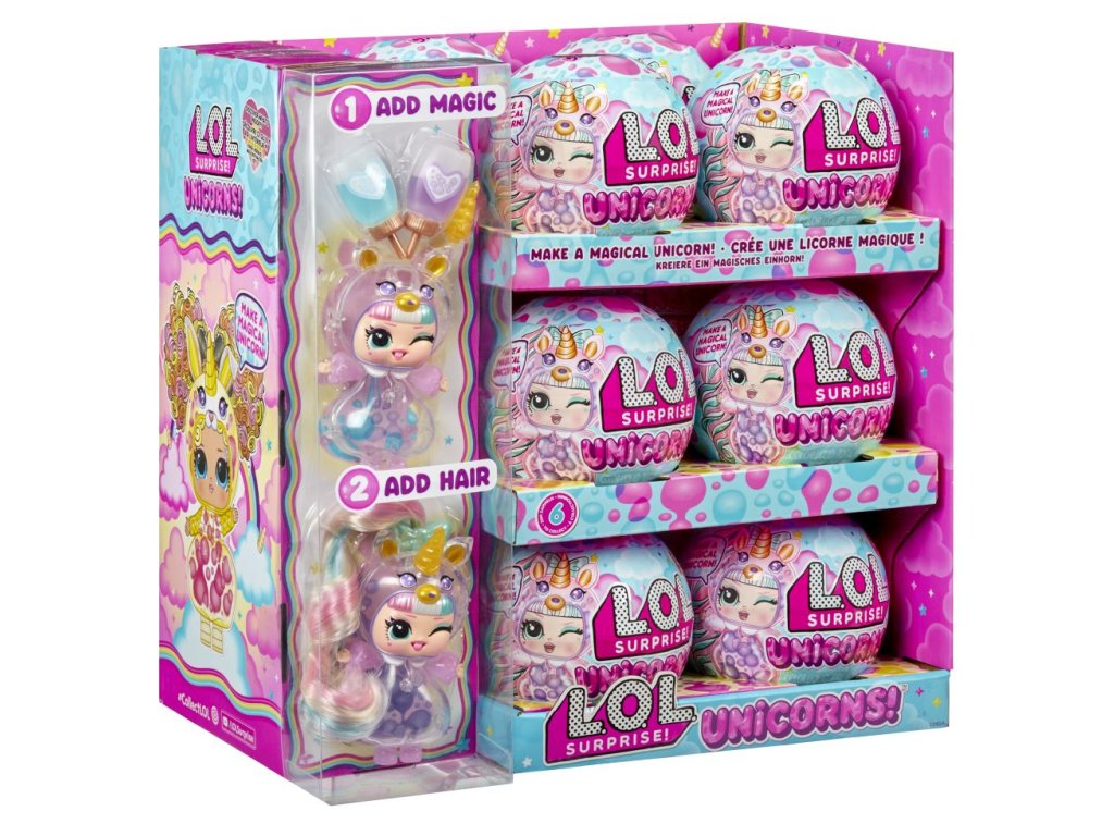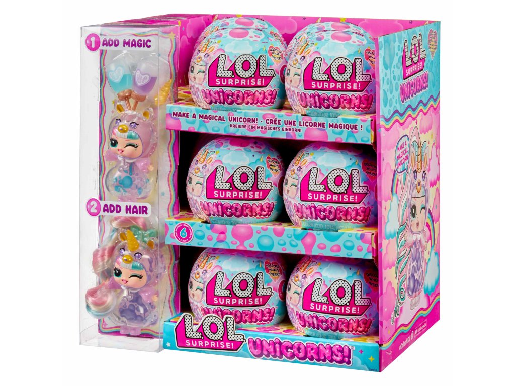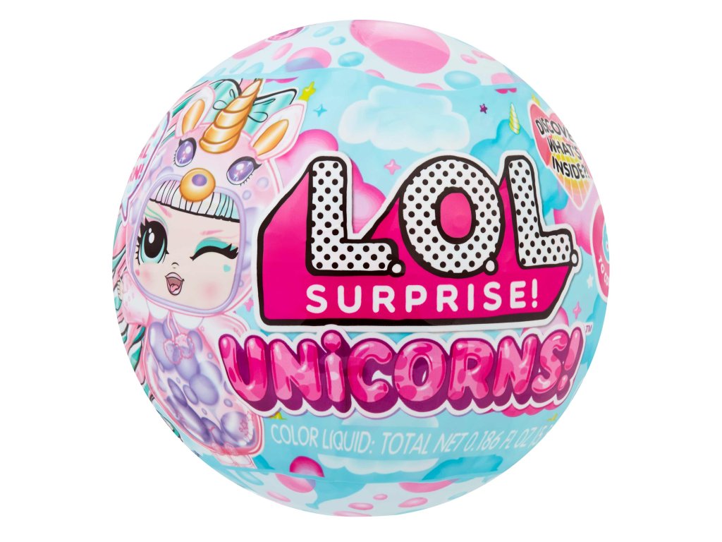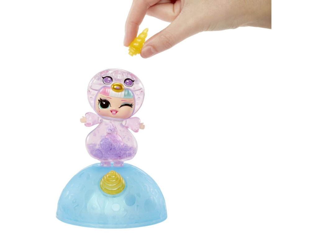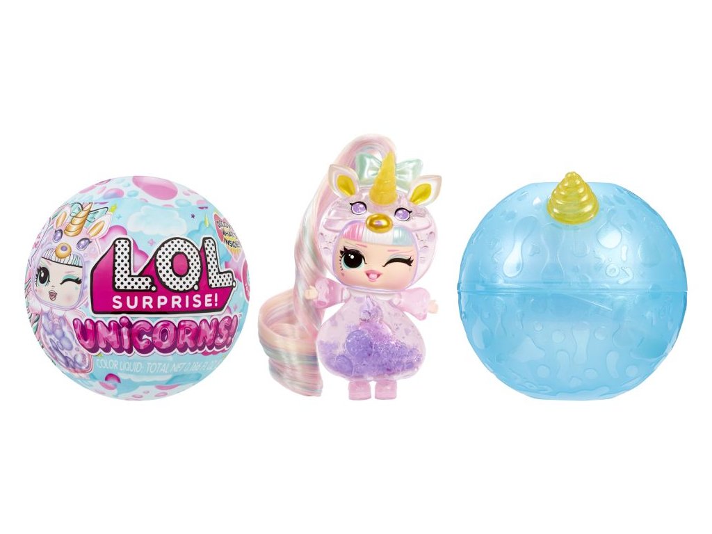 L.O.L. Surprise! panenka s průhledným tělem a hlavou ve tvaru jednorožce. V balení najdeš 2 lahvičky s tekutinou k naplnění těla. Po naplnění budou v panence klouzat barevné bubliny a panenka bude vyvolávat efekt lávové lampy.Obsah balení:?1 panenka s průhledným tělem2 lahvičky s barevnou tekutinoučesatelné vlásky k připnutíV sérii můžeš sesbírat 8 panenek.