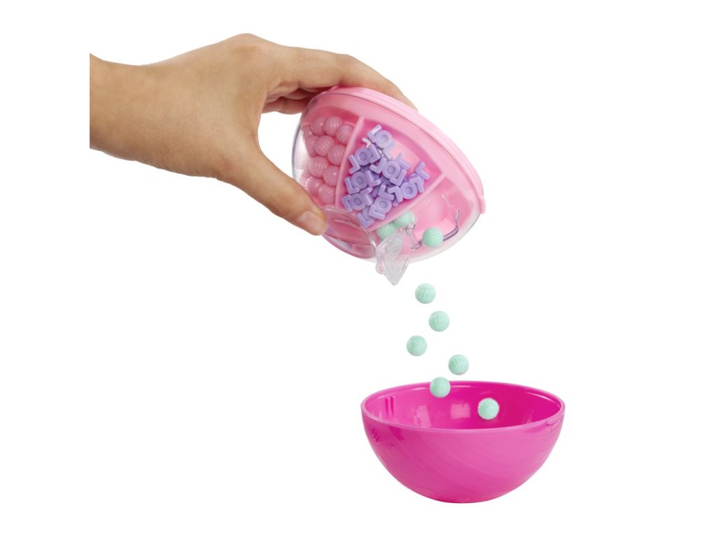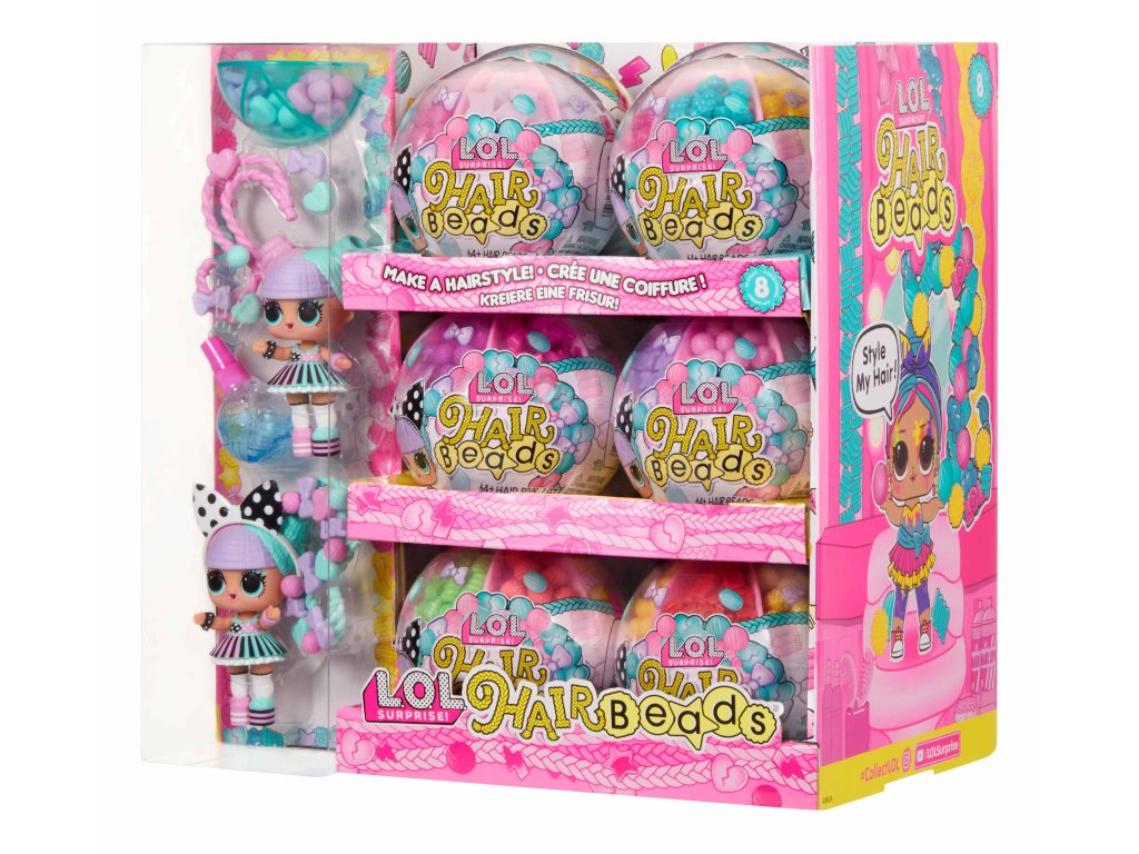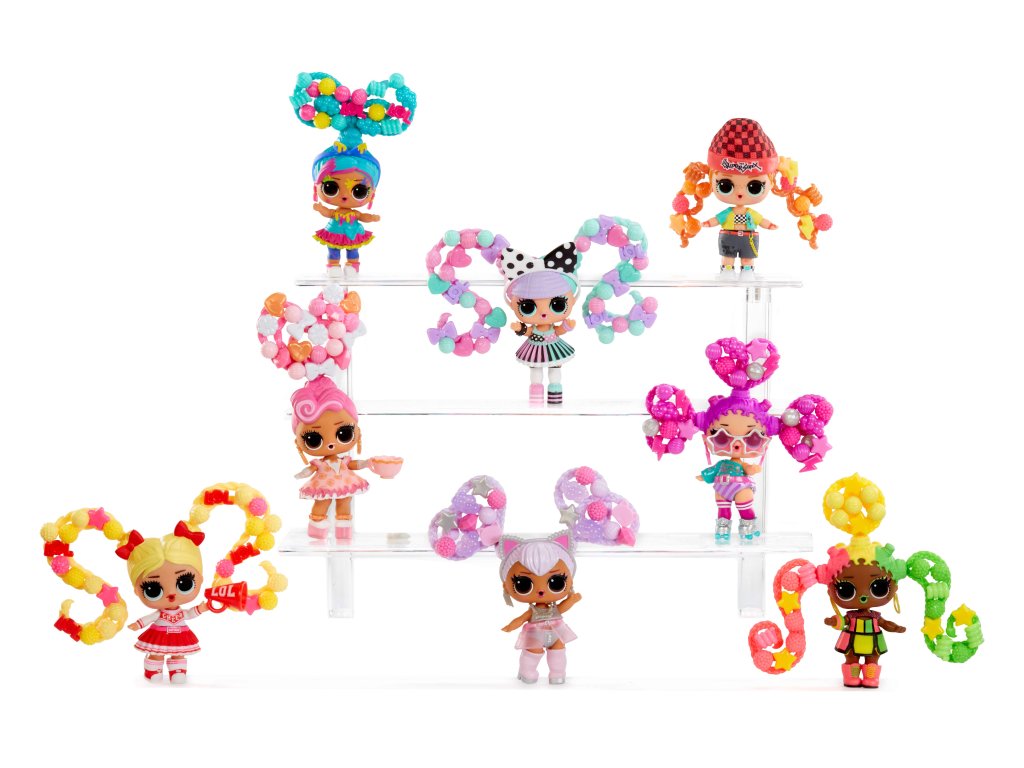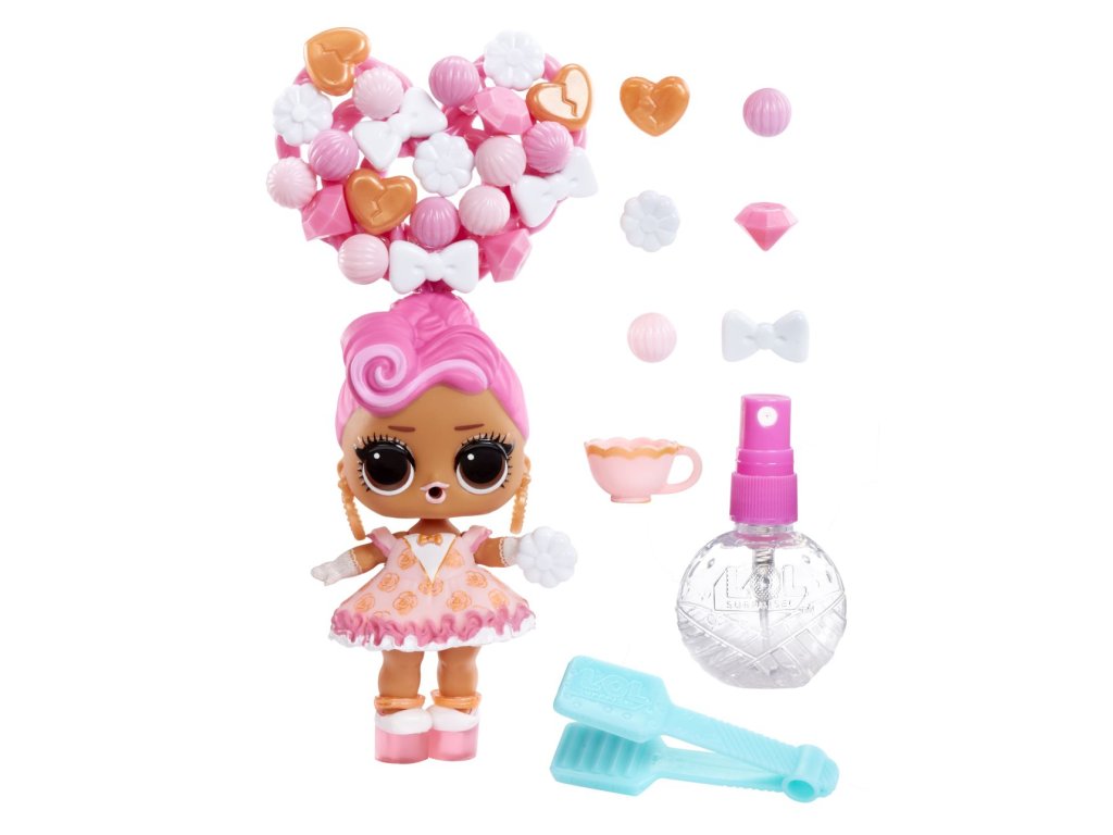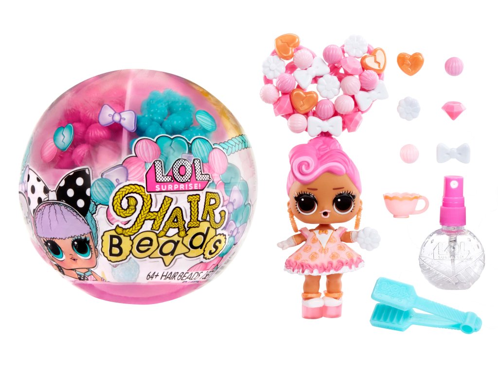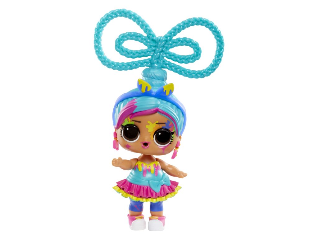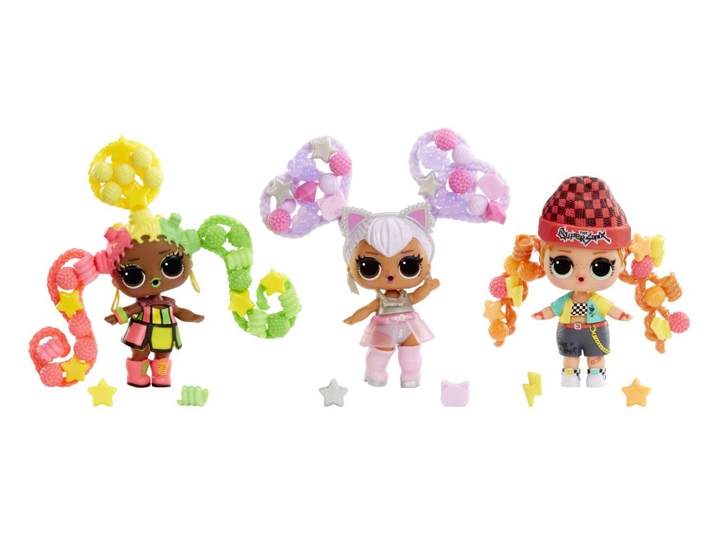 Vytvářej barevné, rozpustilé účesy L.O.L. panenkám. V balení najdeš obrovské množství korálků, ze kterých vytvoříš culíčky, copánky nebo třeba drdůlky. Panence stačí vsadit do drdolu pramen vlasů, předem ho namočit na chvilku do vody, a už můžeš korálky skládat. Rozprašovačem z balení navlhčíš hotový účes a necháš ztvrdnout. Když se účes nelíbí, můžeš korálky rozebrat a vytvořit jiný. Prameny vlasů i korálky je možné v této sérii mezi panenkami měnit.