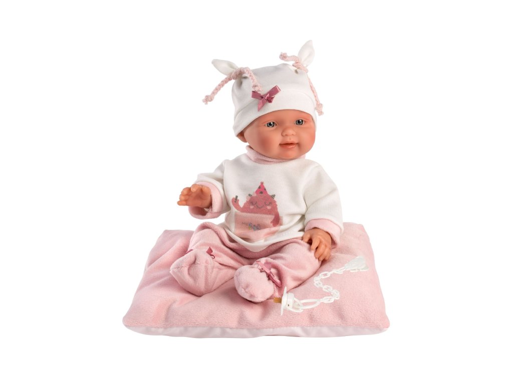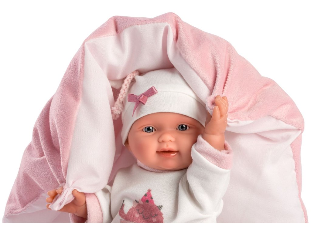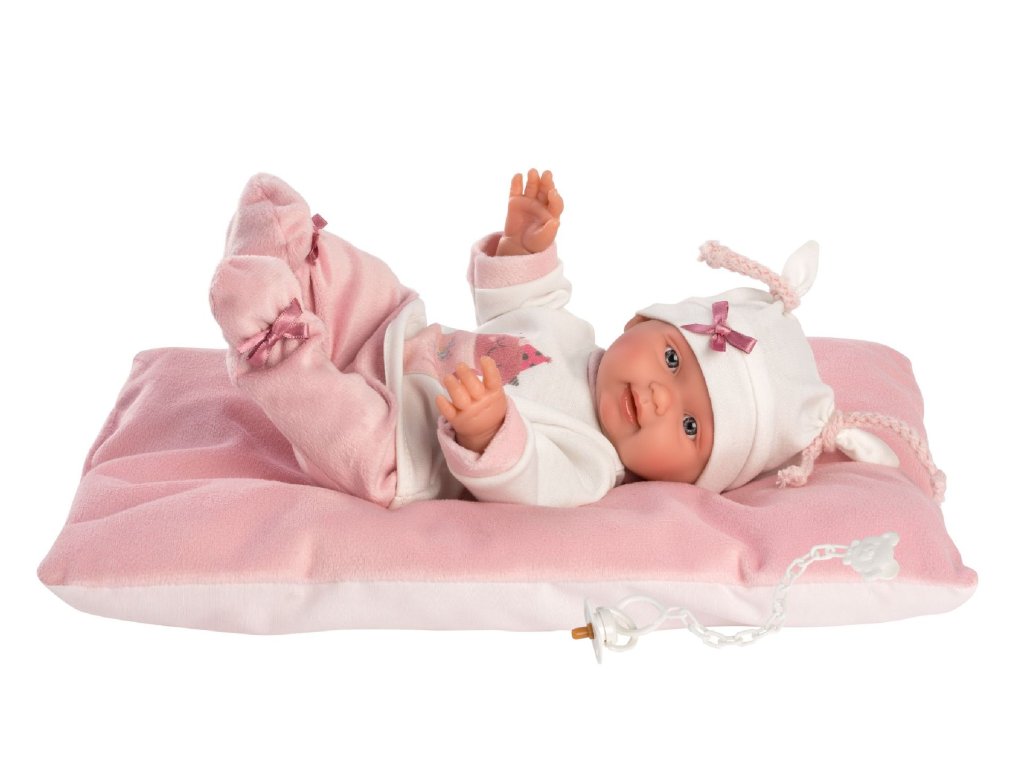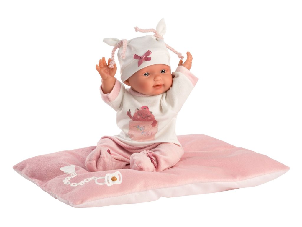 Miminko bez zvuku s vinylovým tělem s možností koupání, na kterém je zachycen doslova každý detail dětského tělíčka včetně roztomilých miminkovských faldíků a pohlaví. Ruce a nohy jsou k tělu přichycené kloubem. Miminko je polohovací a může i sedět. Dudlík v balení slouží pouze jako doplněk. Velikost 26 cm. Ručně vyrobeno ve Španělsku, baleno v dárkové krabici. Doporučený věk od 3 let.